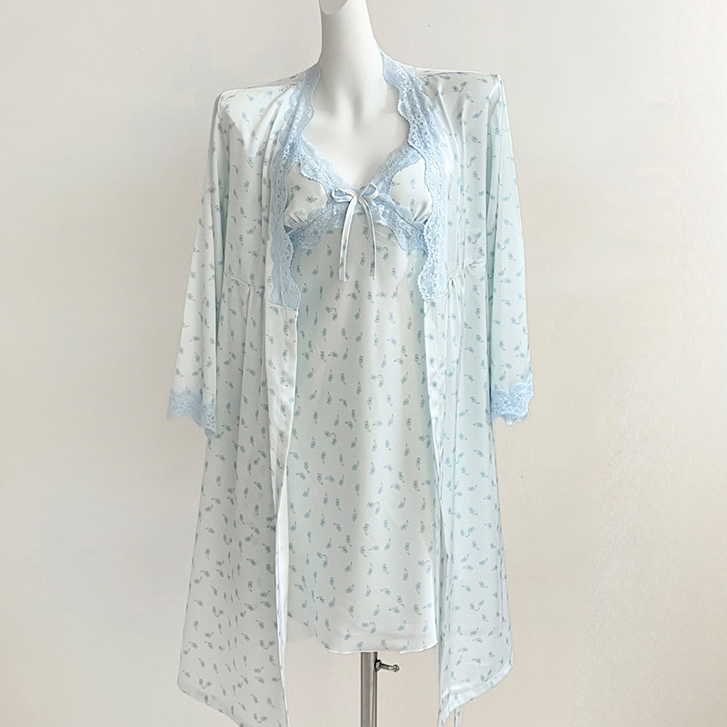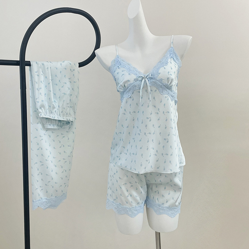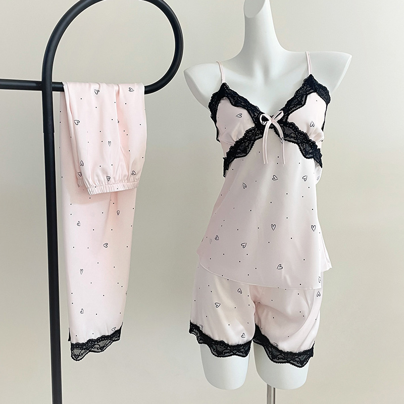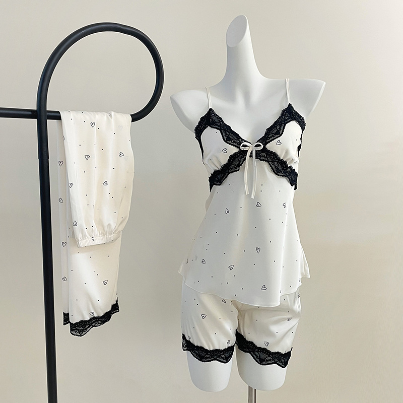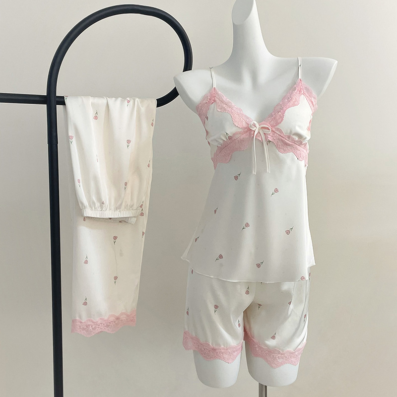 가슴 패드가있는 여성용 섹시한 서스펜더 잠옷, 아이스 실크 여성용 홈웨어, 프린트 서스펜더 잠옷, 여성스러운 홈웨어스토어 가기