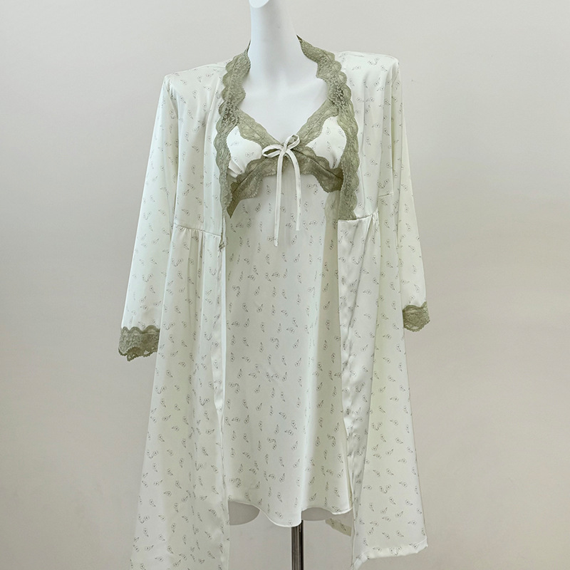 가슴 패드가있는 여성용 섹시한 서스펜더 잠옷, 아이스 실크 여성용 홈웨어, 프린트 서스펜더 잠옷, 여성스러운 홈웨어