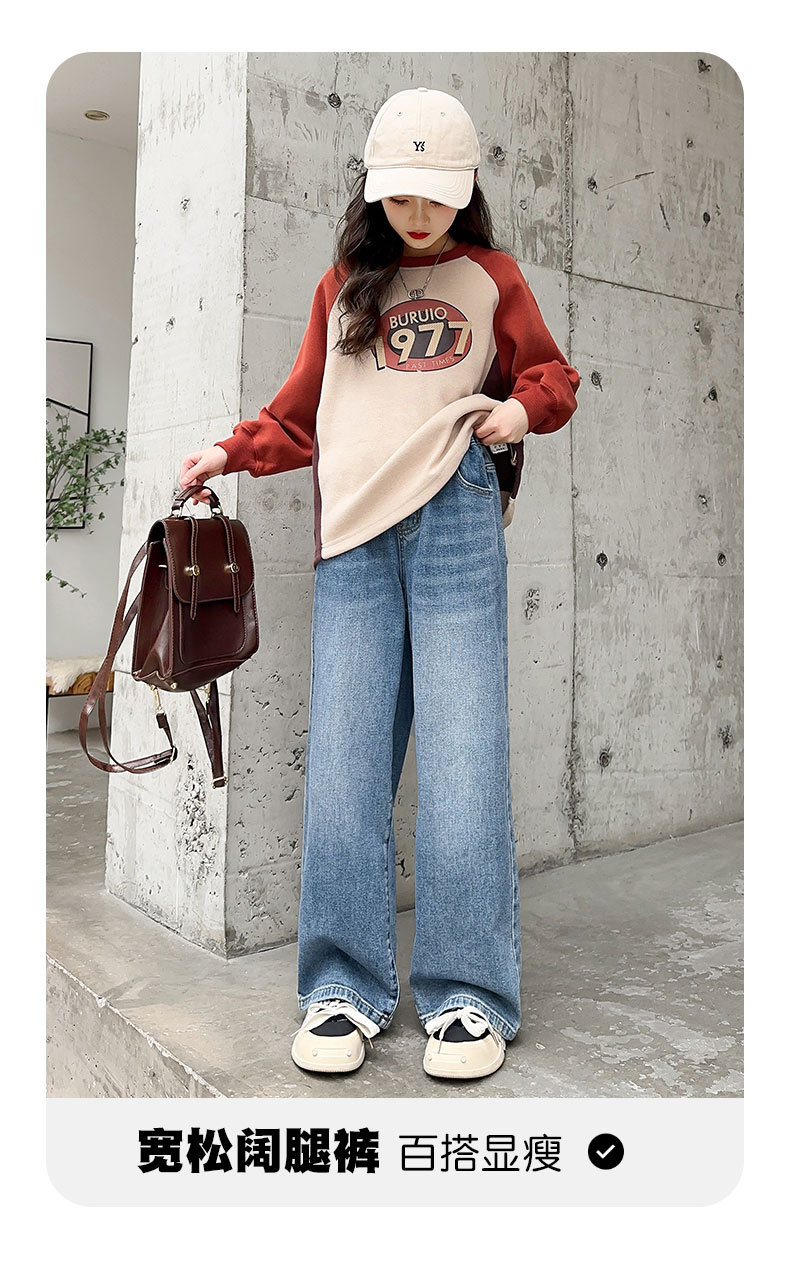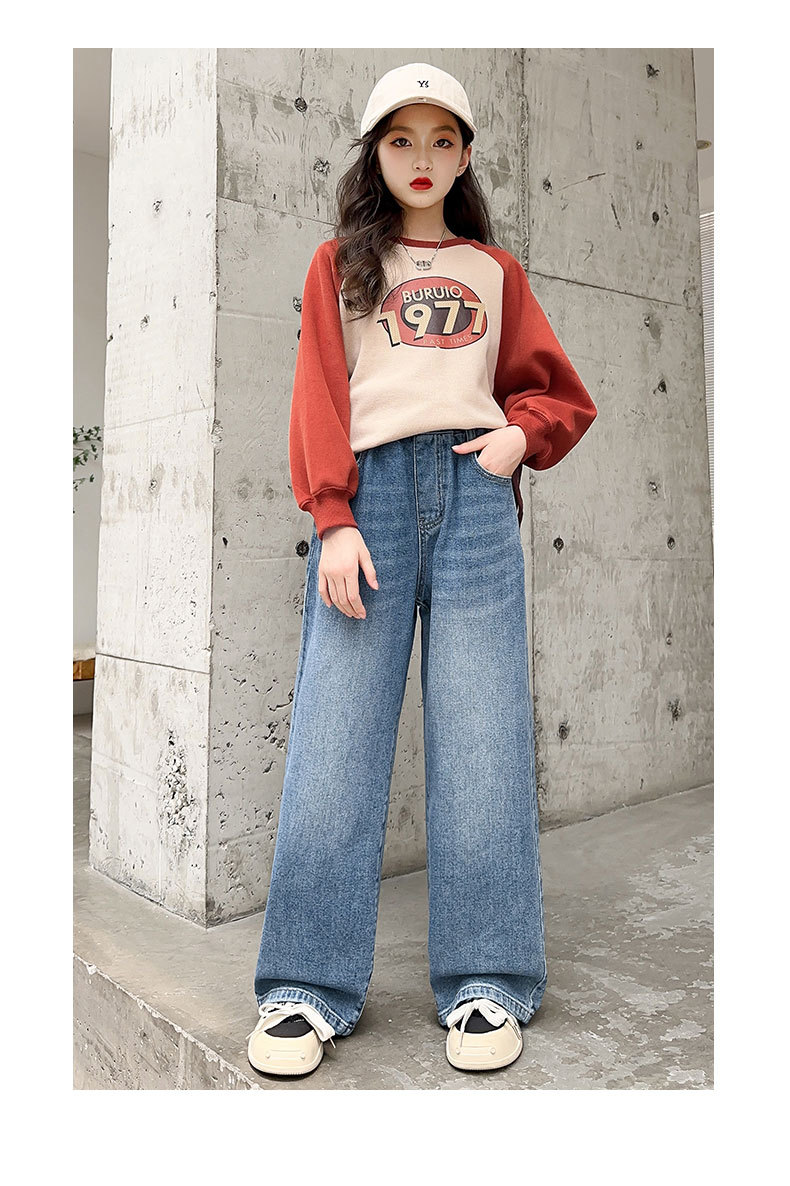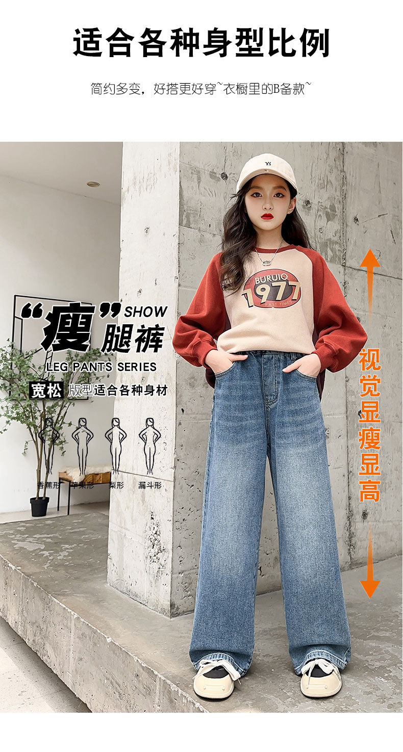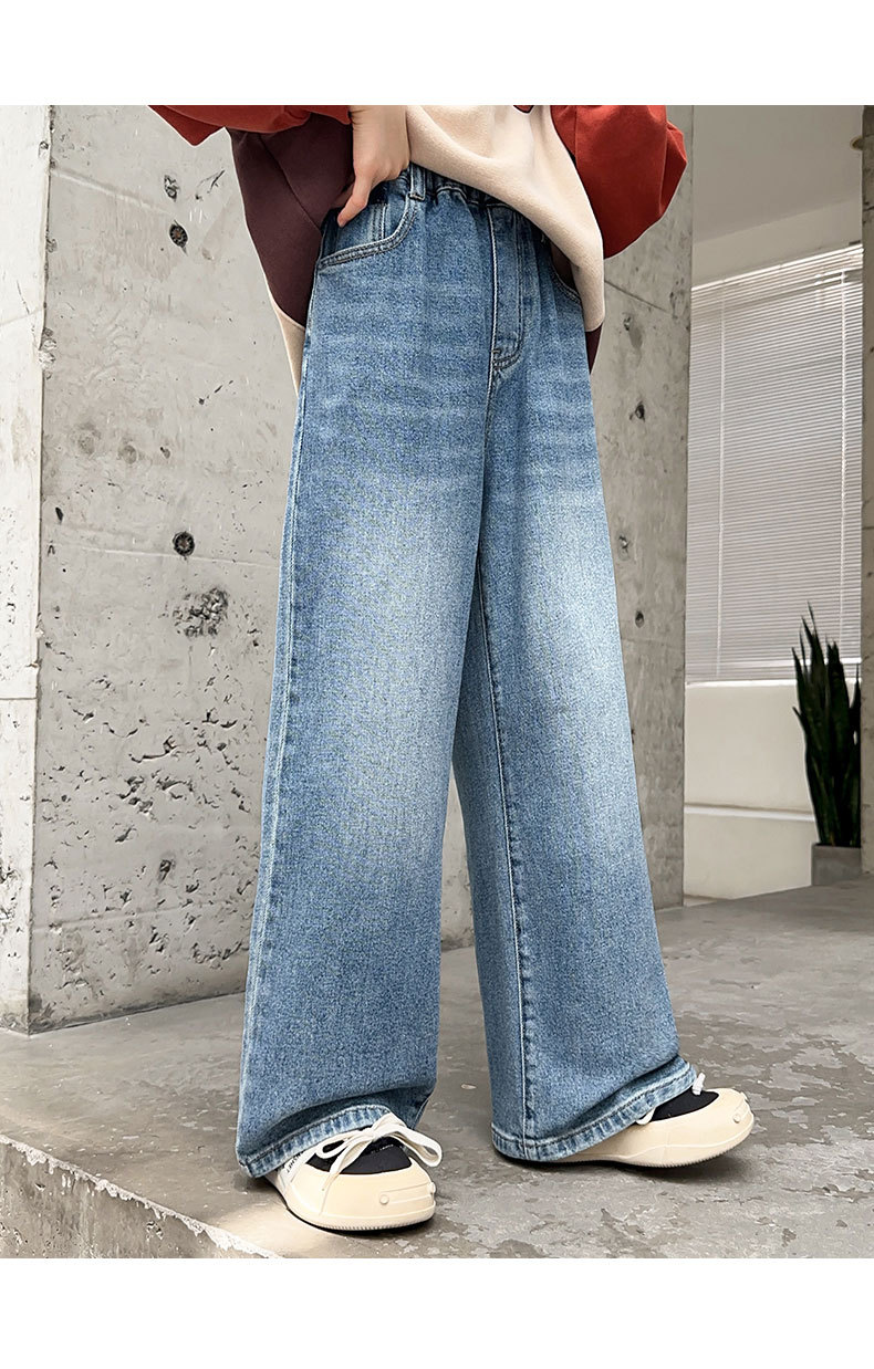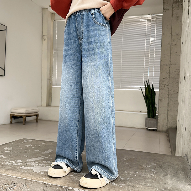 소녀 청바지 봄과 가을 2023 새로운 어린이 봄 넓은 다리 바지 봄 의류 소녀 봄 바지스토어 가기