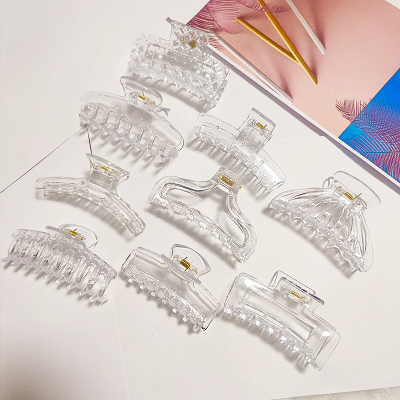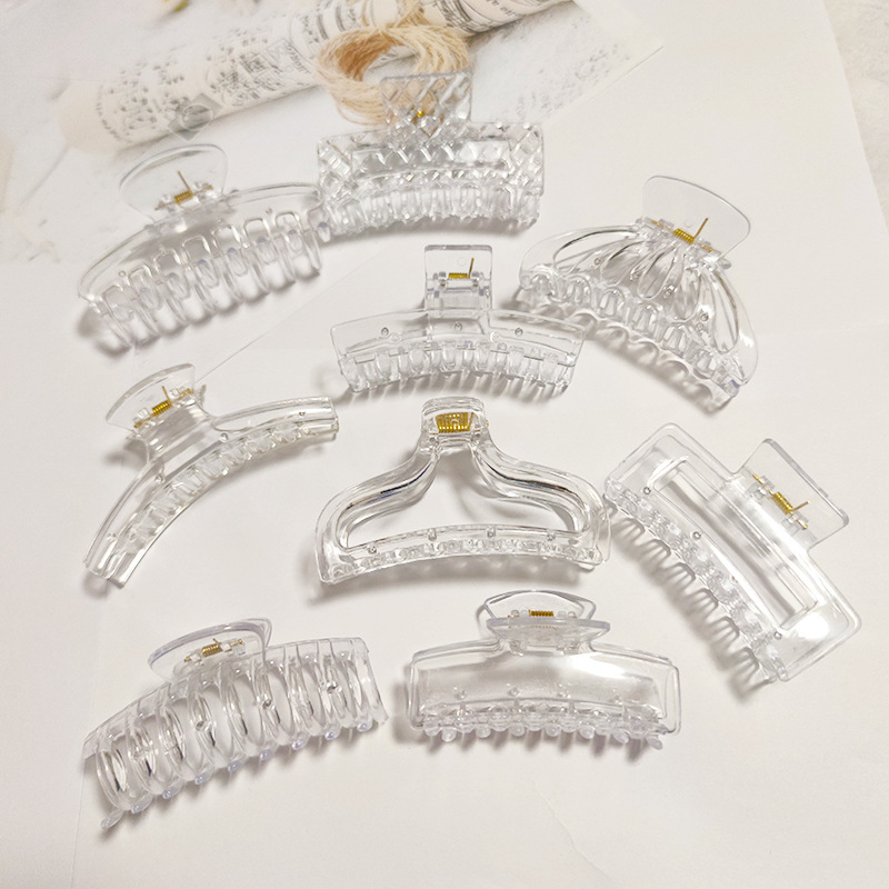 아마존 스팟 새로운 투명 헤어 액세서리 중간 크기 클립 2024 봄 상어 클립 빈 헤어 클립 도매