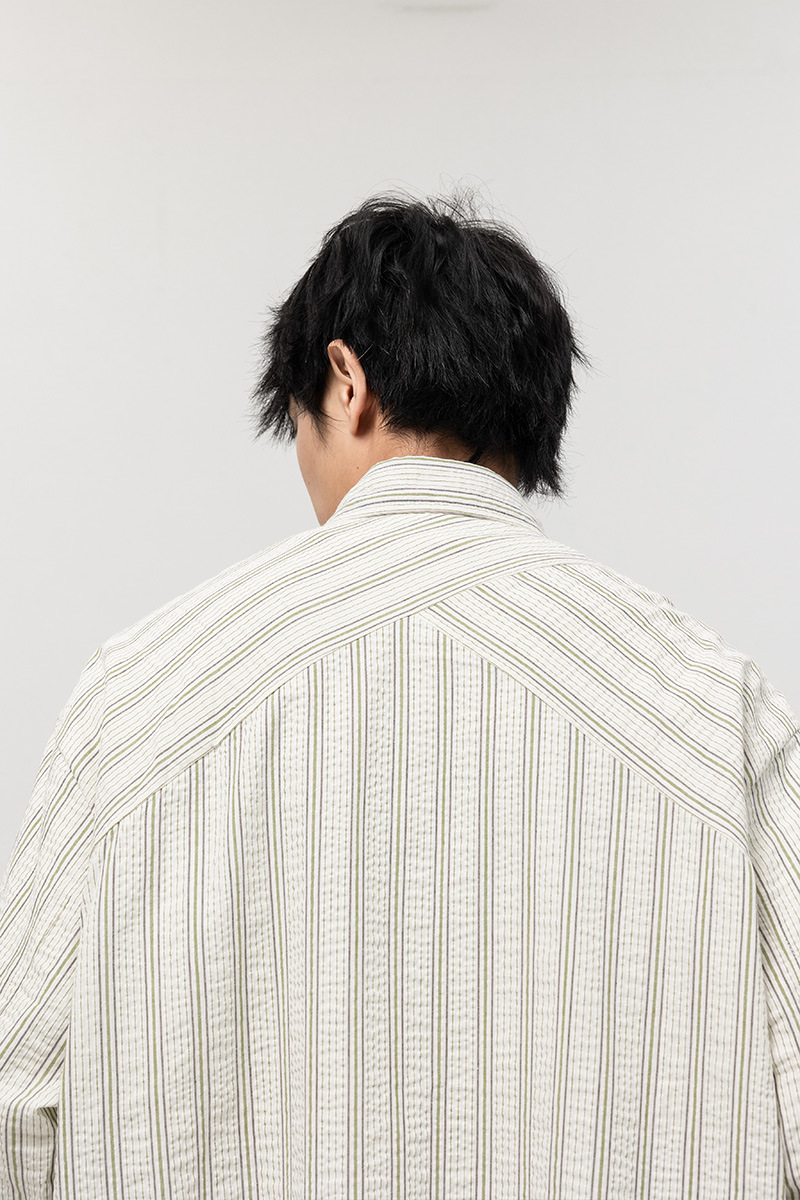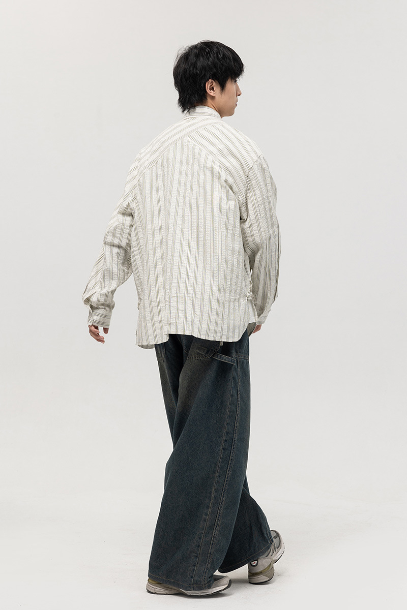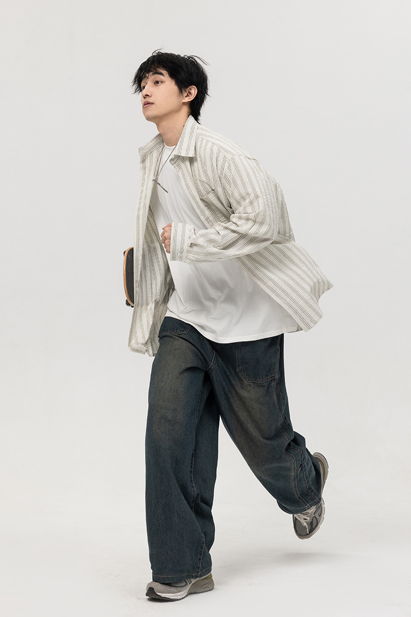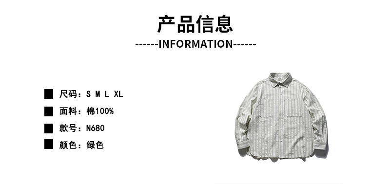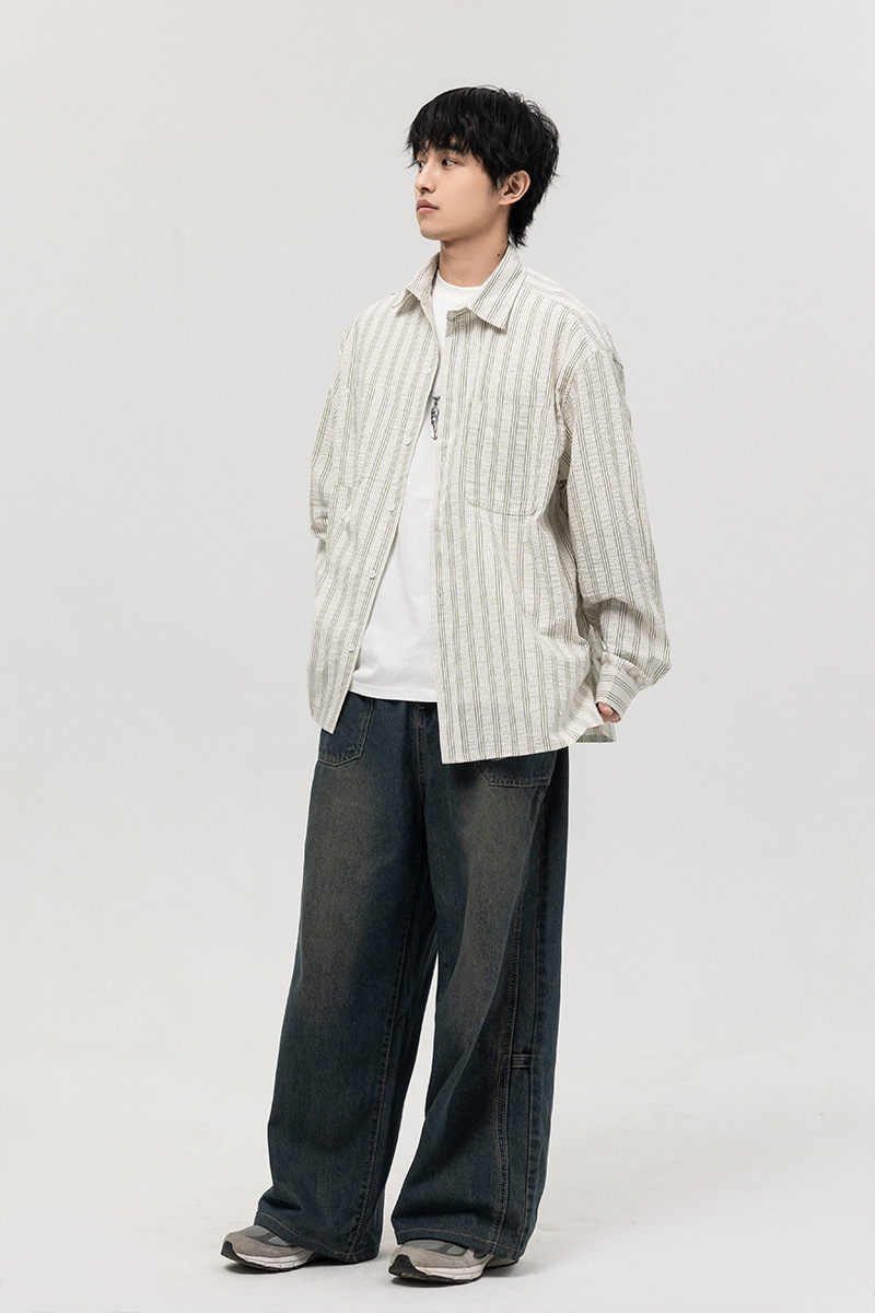 ATBORDER2024 봄 일본 레트로 루즈핏 트렌디 셔츠 캐주얼 긴팔 스트라이프 카라 셔츠 남성용스토어 가기