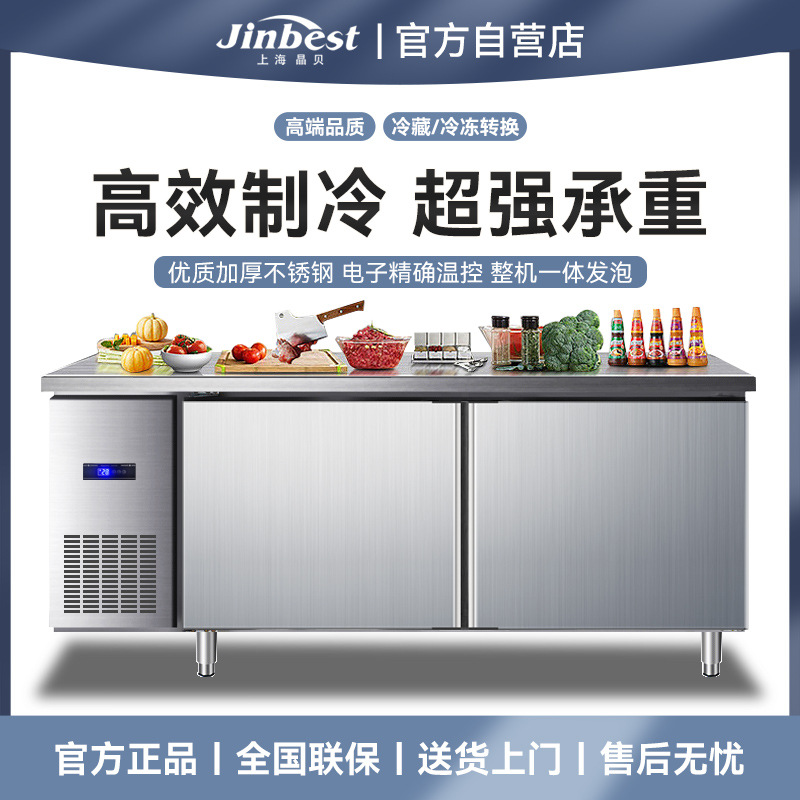 크리스탈 베이 플랫 콜드 워크테이블 상업용 냉장 냉동 냉장고 수평형 작업 플랫 콜드 이중 온도 스테인리스 작업대스토어 가기