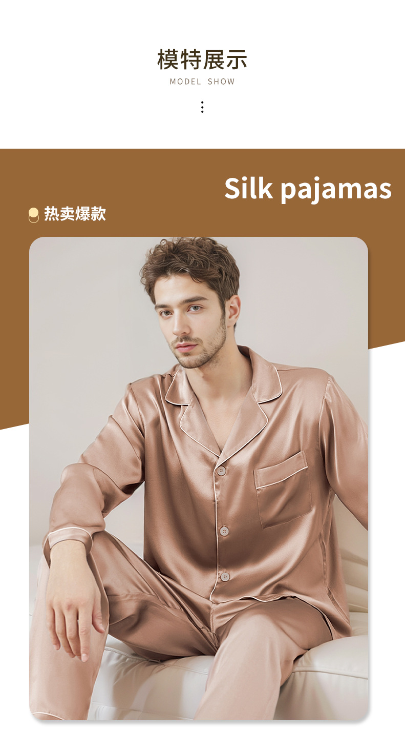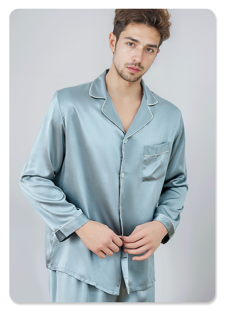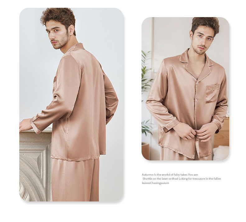 2025 가을 겨울 긴팔 긴바지 잠옷 홈웨어 세트 100% 실크 외출 가능 남성 실크 잠옷