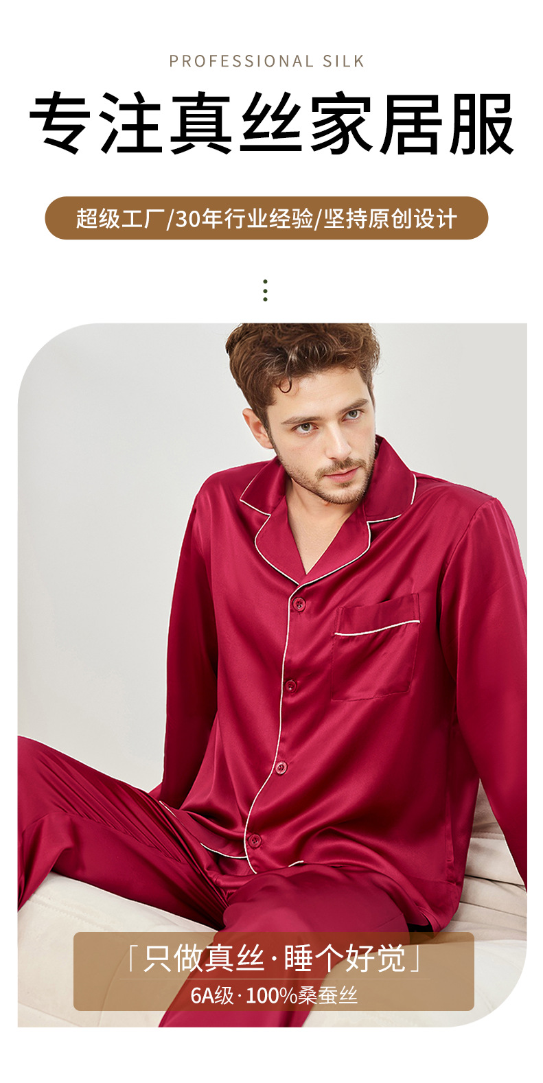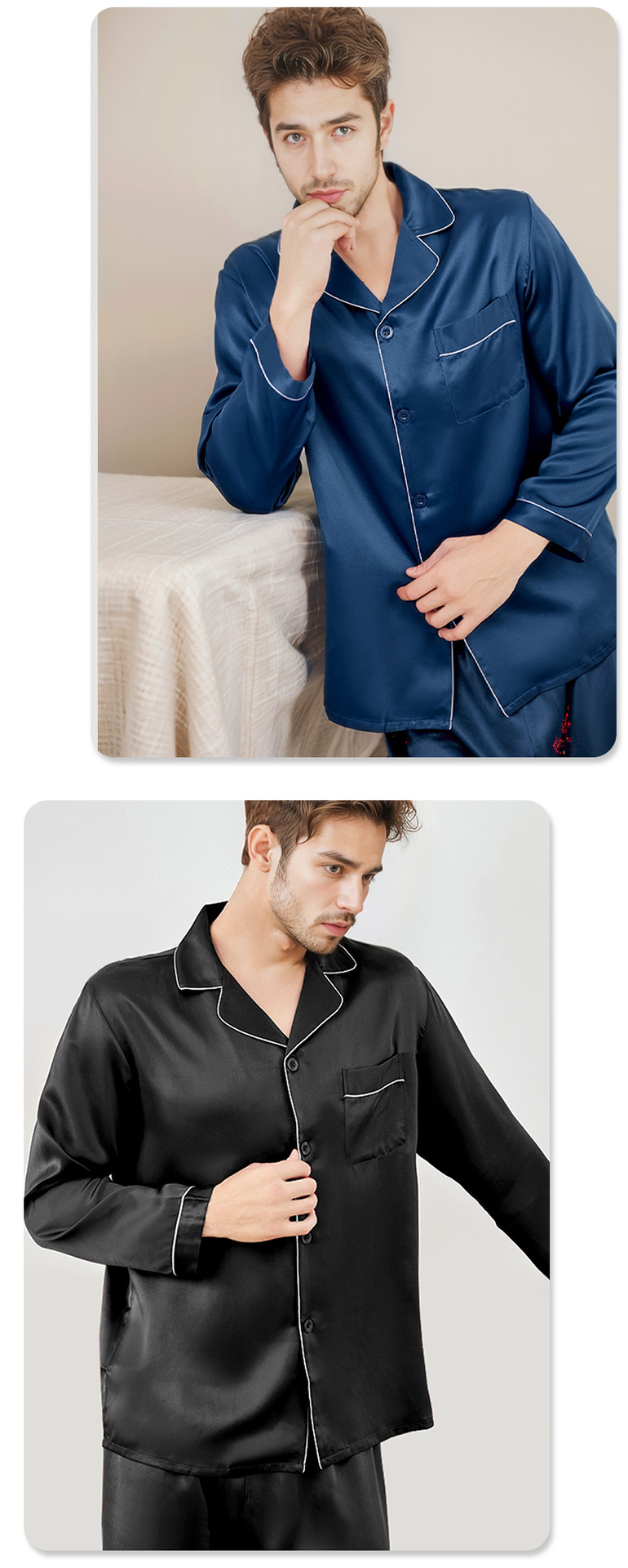 2025 가을 겨울 긴팔 긴바지 잠옷 홈웨어 세트 100% 실크 외출 가능 남성 실크 잠옷스토어 가기