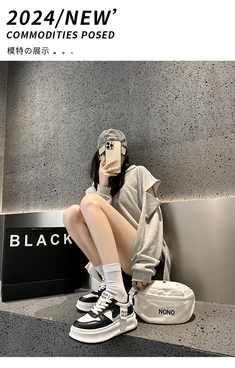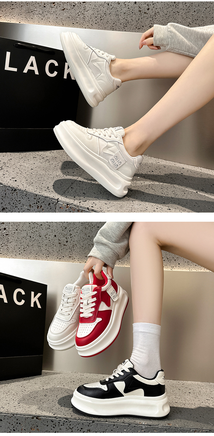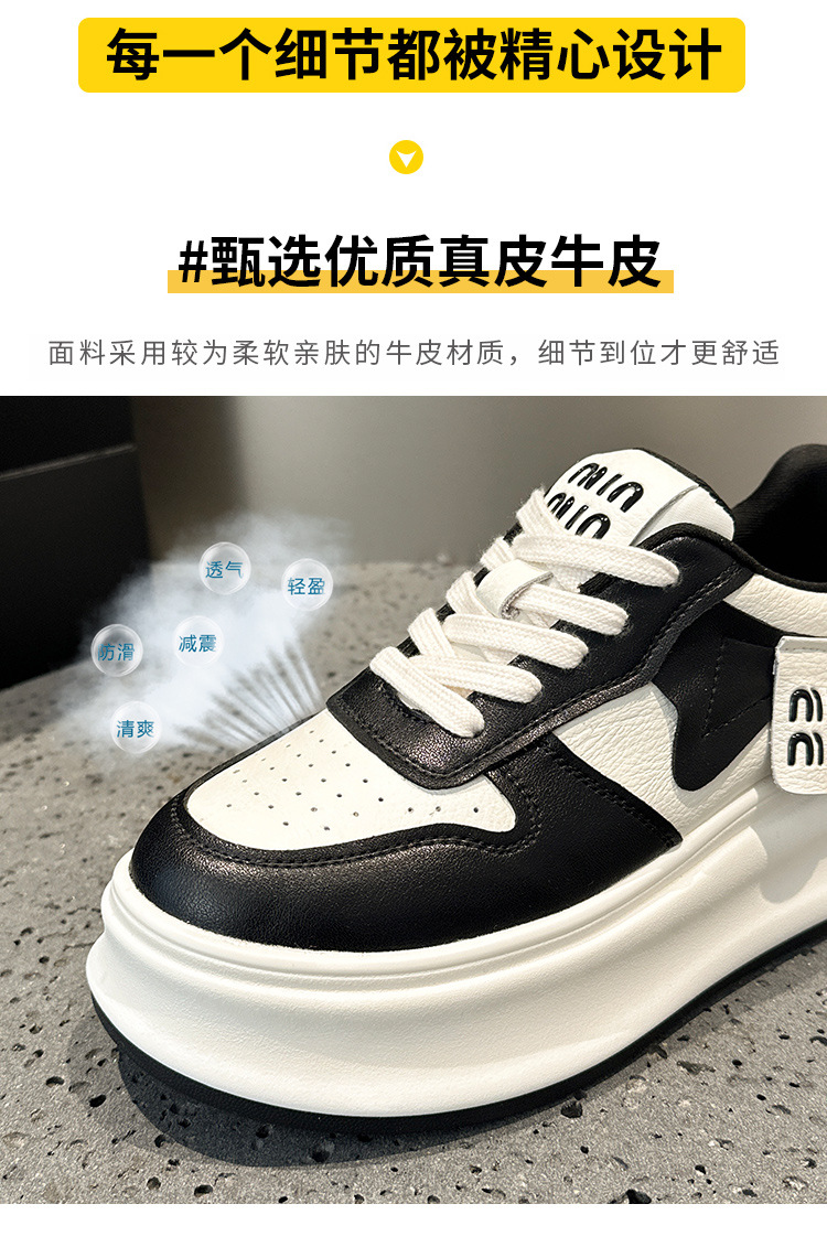 여성용 흰색 신발 2025 봄 천연 가죽 팬더 신발 한국 스타일 다용도 두꺼운 밑창 캐주얼 신발 운동화 편안함스토어 가기