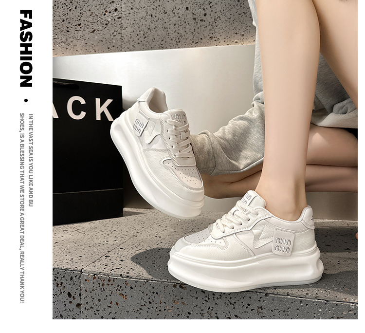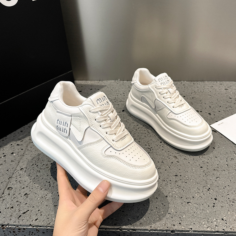 여성용 흰색 신발 2025 봄 천연 가죽 팬더 신발 한국 스타일 다용도 두꺼운 밑창 캐주얼 신발 운동화 편안함