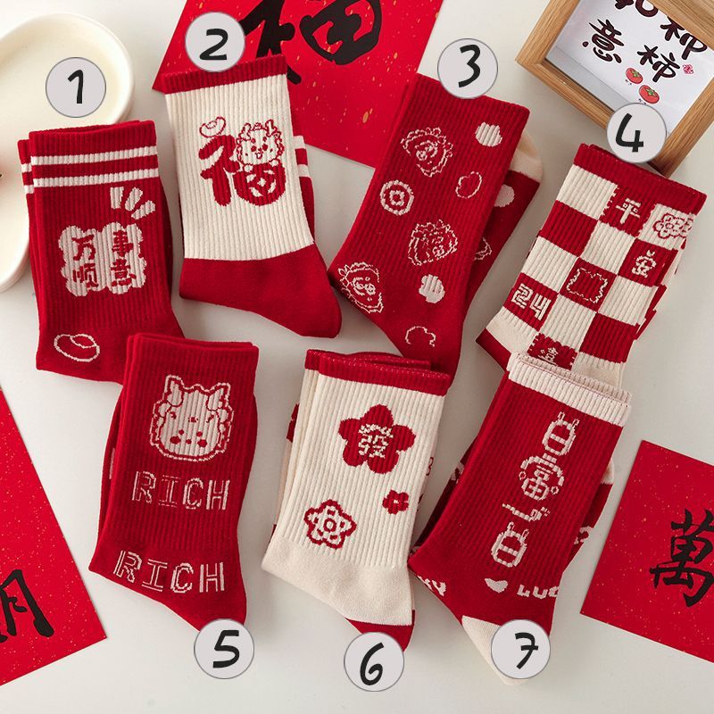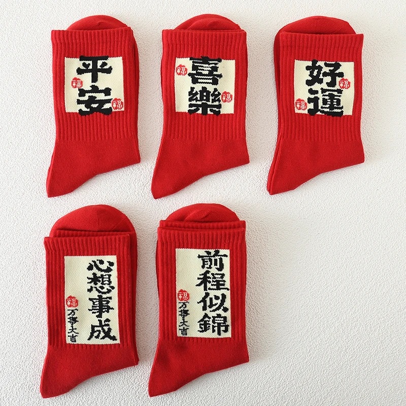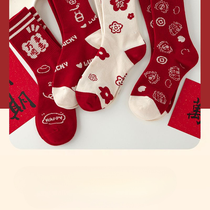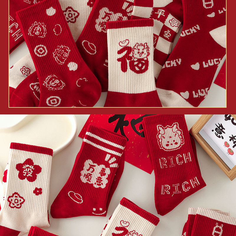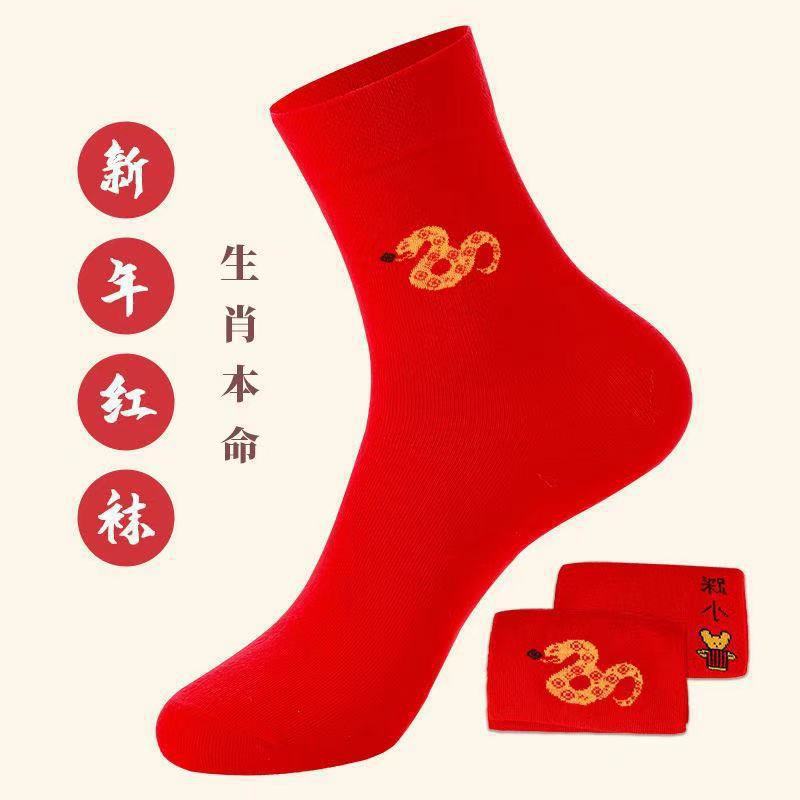 남자와 여자를위한 뱀의 해 붉은 양말 가을과 겨울 두꺼운 일본 귀여운 만화 새해 중국 새해 스타킹 학생들을위한스토어 가기