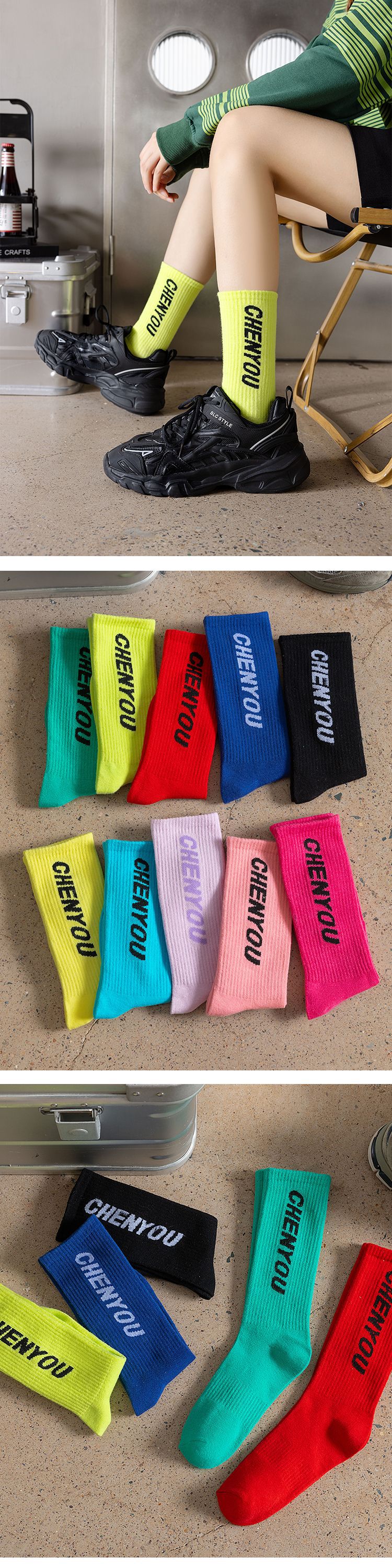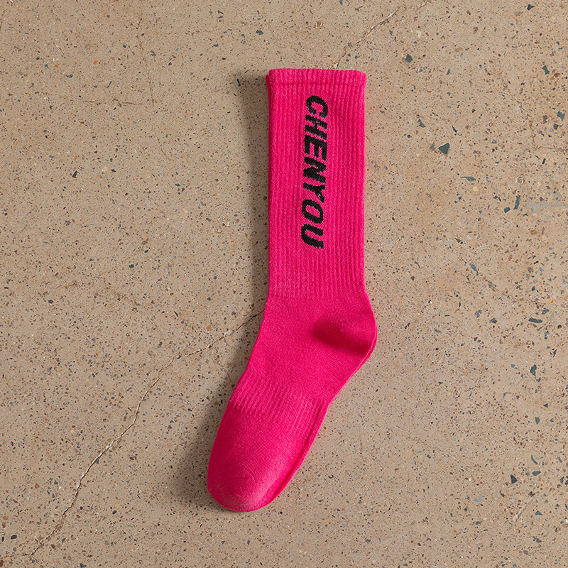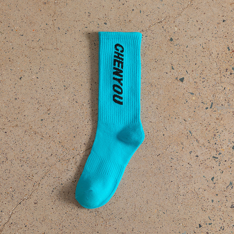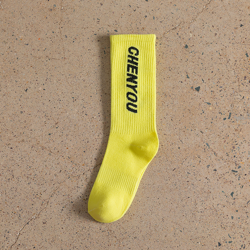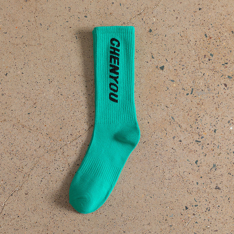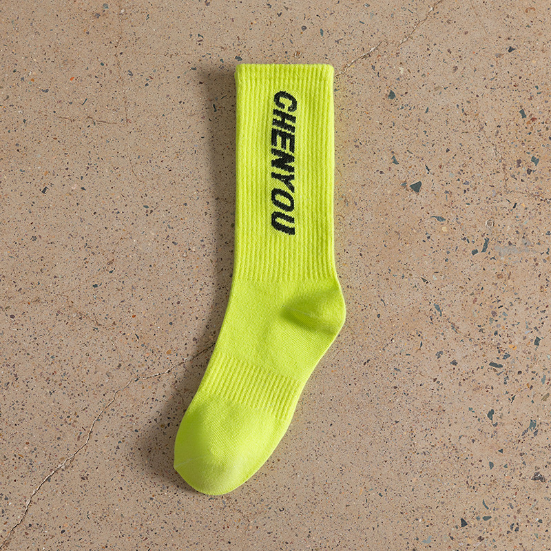 도파민 양말 녹색 양말 남성과 여성의 편지 패션 브랜드 중간 종아리 길이 양말 다목적 대학 스타일 형광 녹색 스타킹스토어 가기