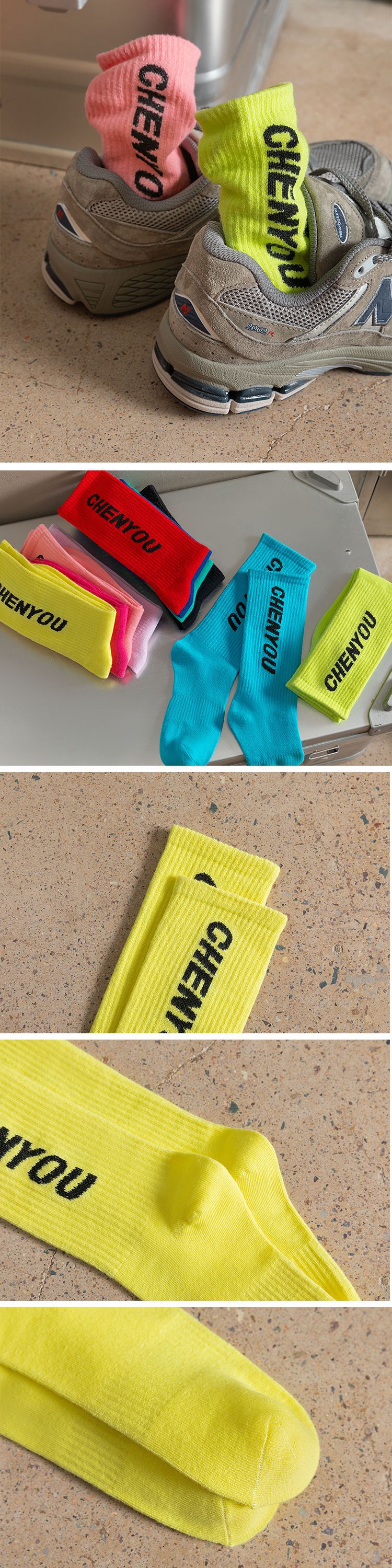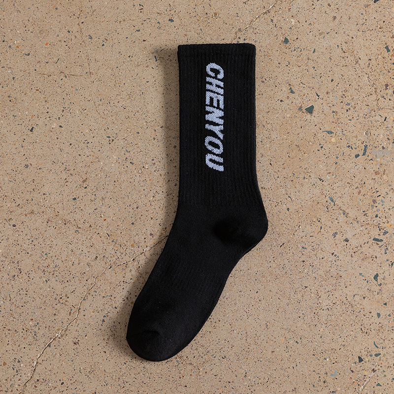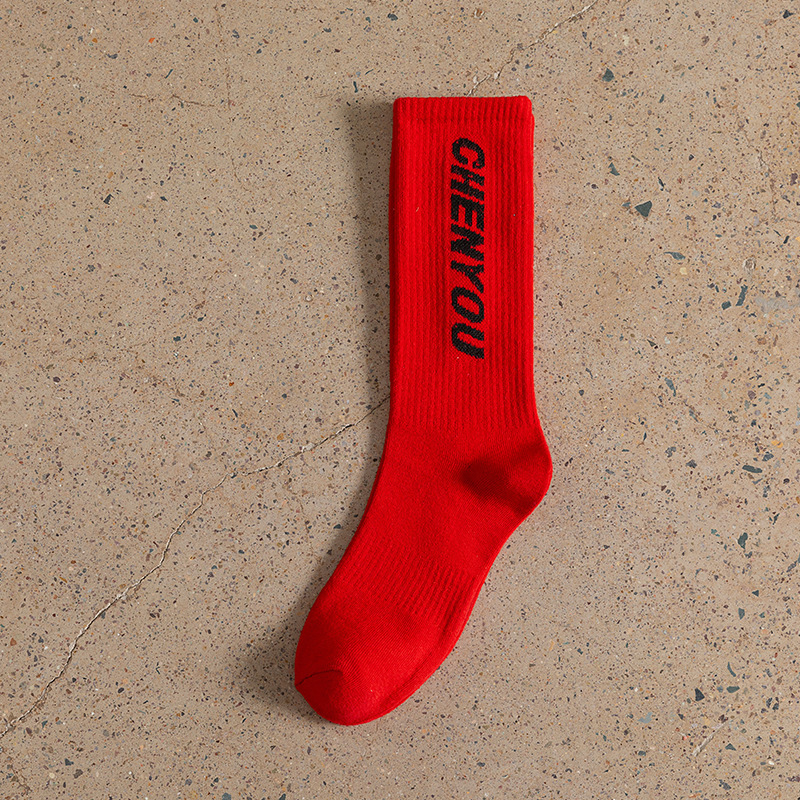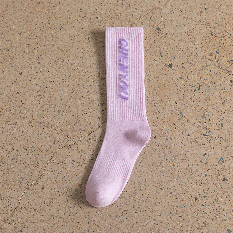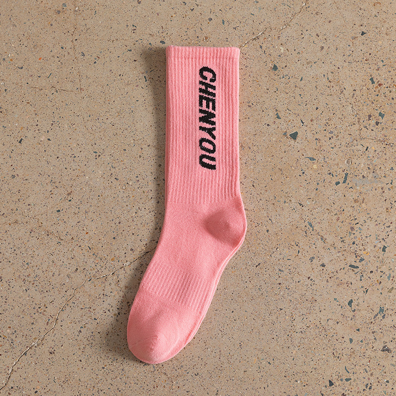 도파민 양말 녹색 양말 남성과 여성의 편지 패션 브랜드 중간 종아리 길이 양말 다목적 대학 스타일 형광 녹색 스타킹스토어 가기