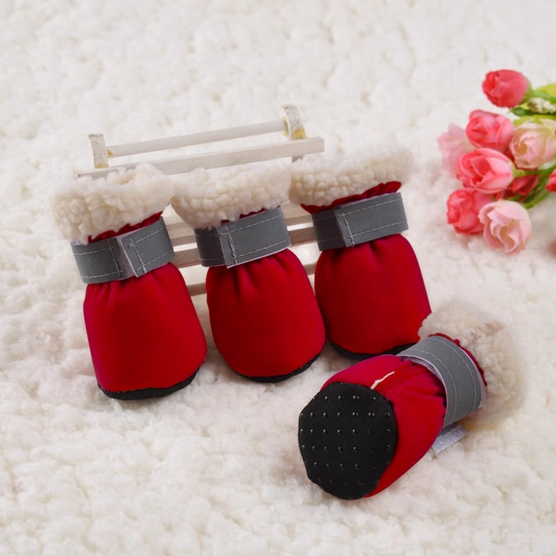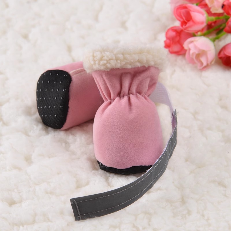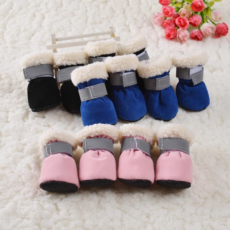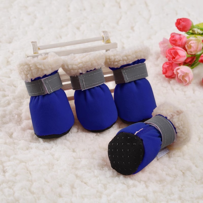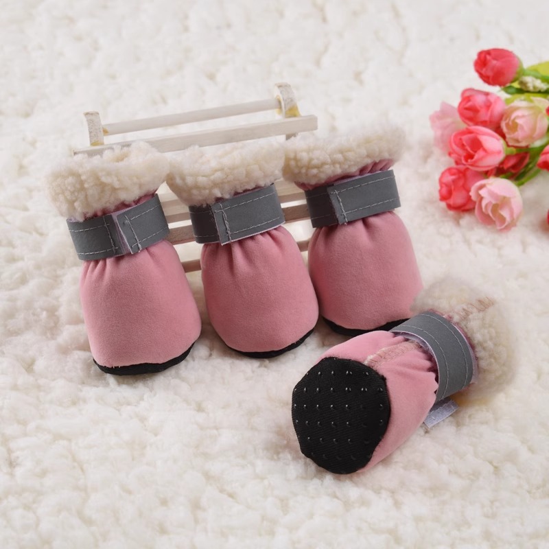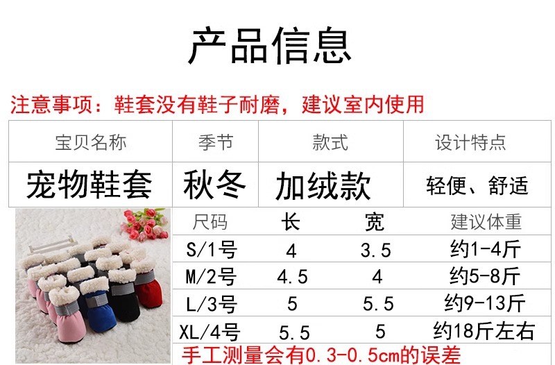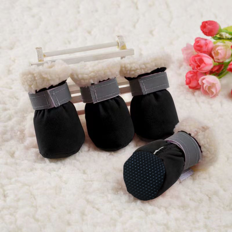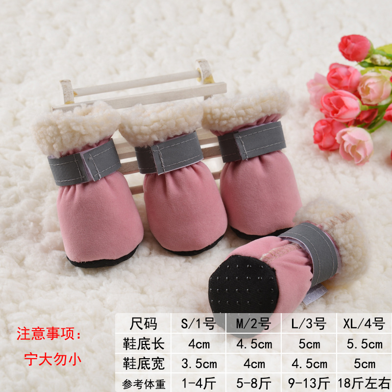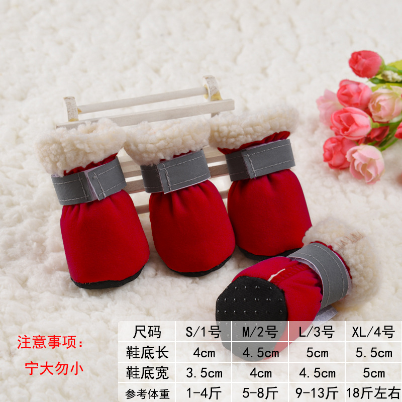 애완 동물 신발 기모 두꺼운 따뜻한 부드러운 바닥 반사 신발 커버 실내 착용 미끄럼 방지 가을과 겨울 개 신발스토어 가기