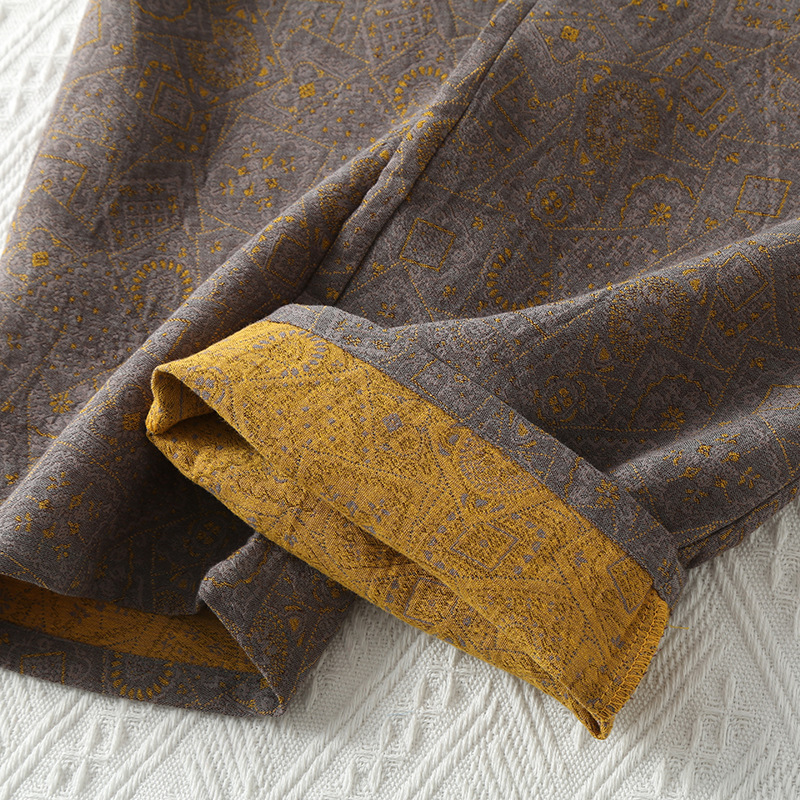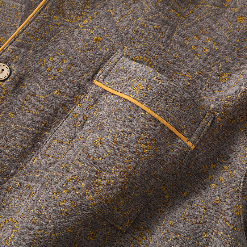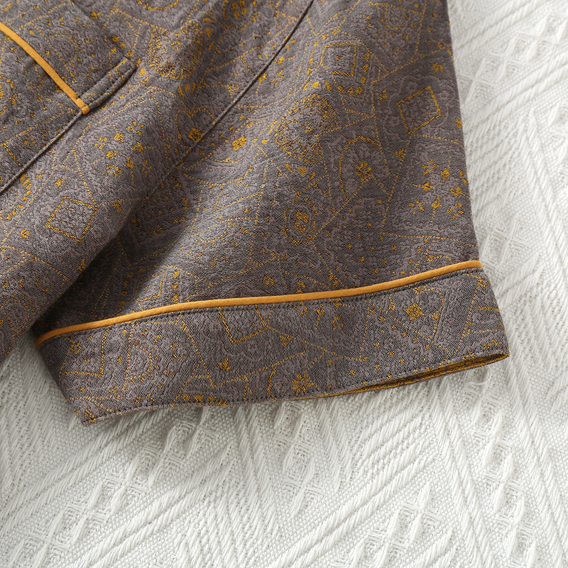 봄과 가을 남자 순면 원사 염색 더블 레이어 거즈 여름 반팔 얇은 파자마 빈티지 자카드 의류스토어 가기
