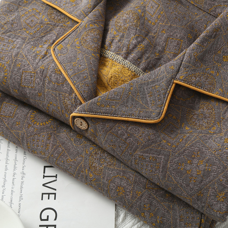 봄과 가을 남자 순면 원사 염색 더블 레이어 거즈 여름 반팔 얇은 파자마 빈티지 자카드 의류