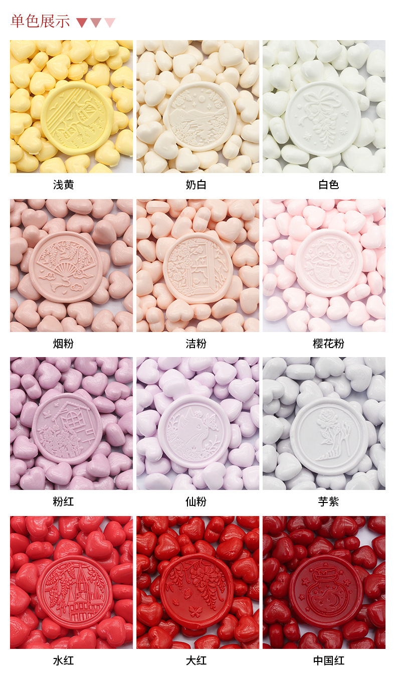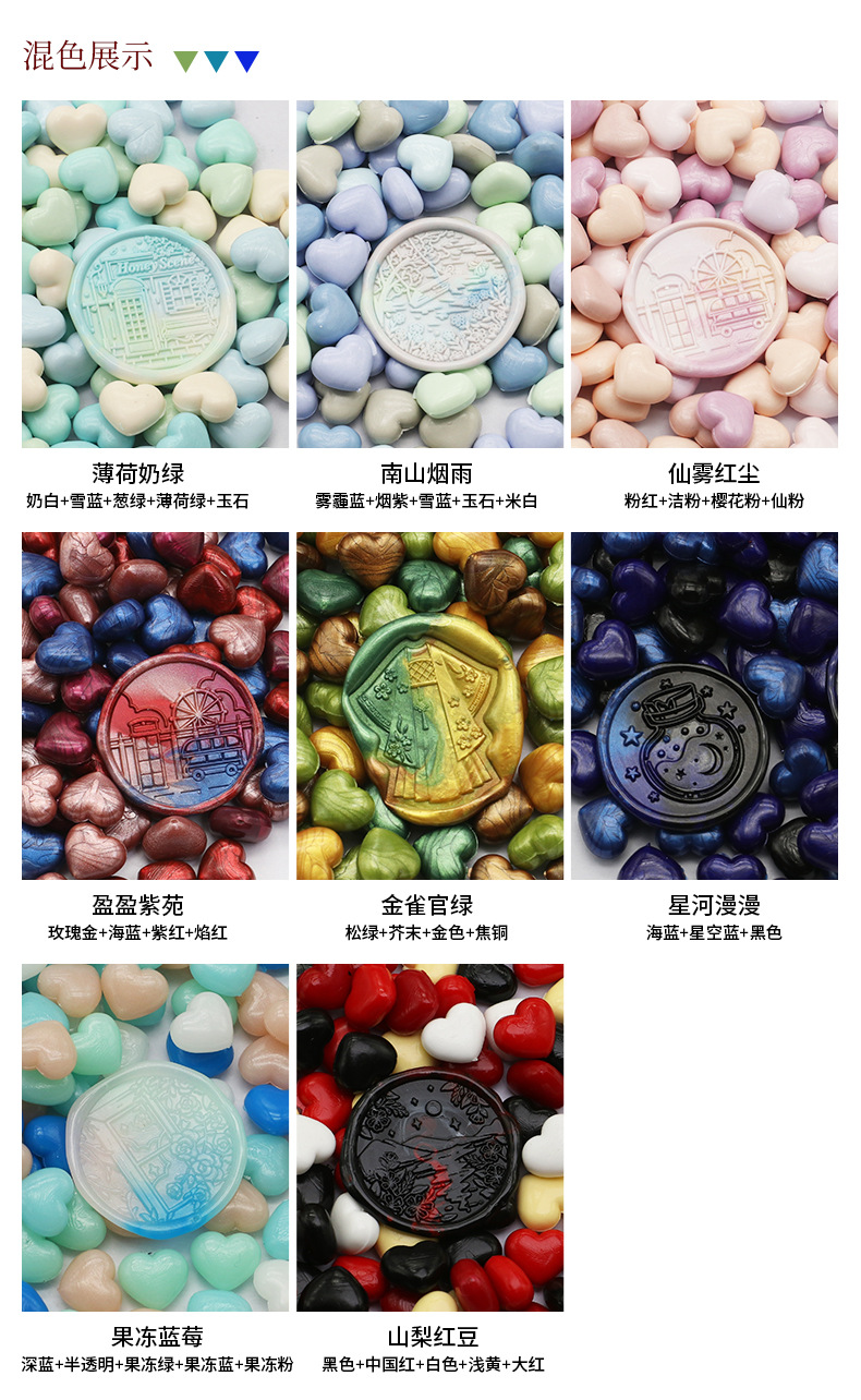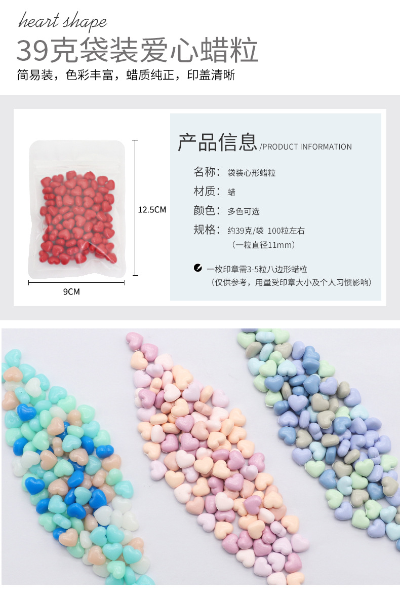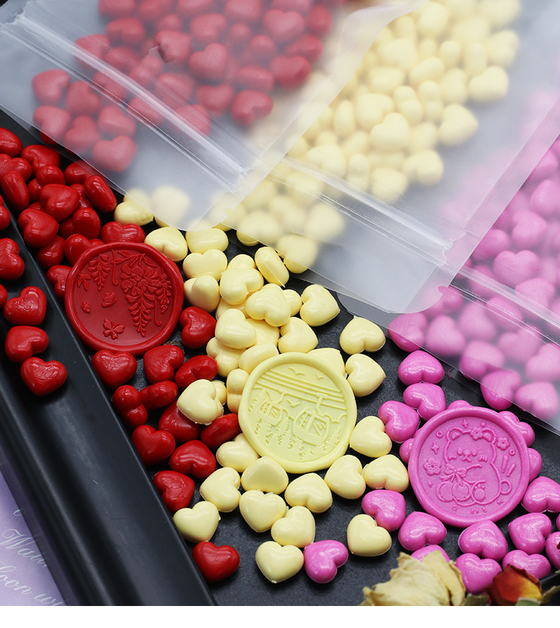 화재 페인트 왁스 입자 색상 혼합 색상 밀봉 왁스 100 입자 39g 화재 페인트 씰 왁스 입자 작은 가방 심장 모양의 공장 도매