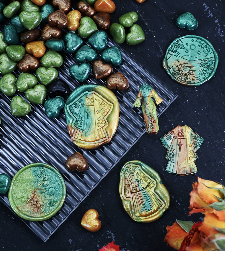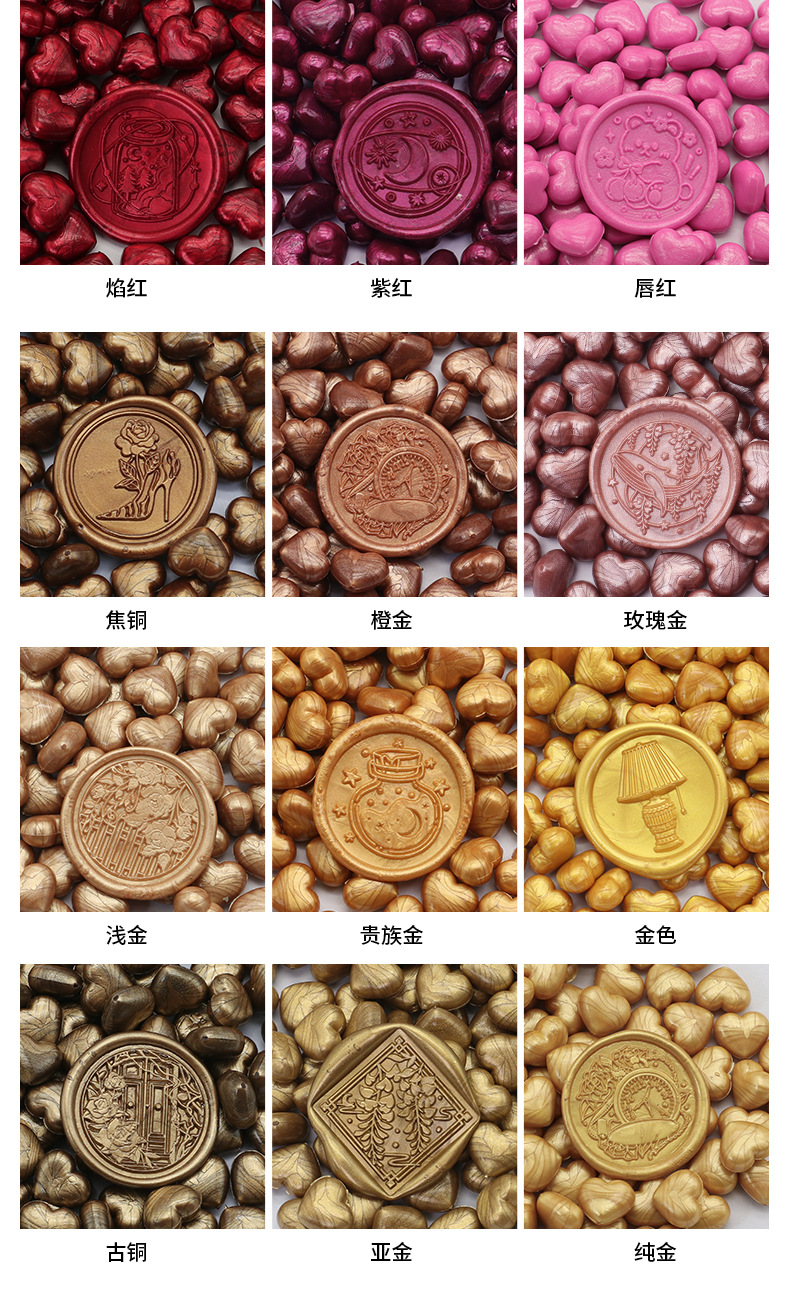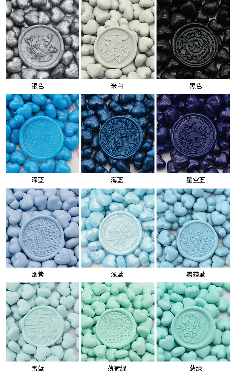 화재 페인트 왁스 입자 색상 혼합 색상 밀봉 왁스 100 입자 39g 화재 페인트 씰 왁스 입자 작은 가방 심장 모양의 공장 도매
