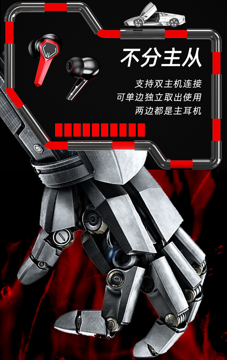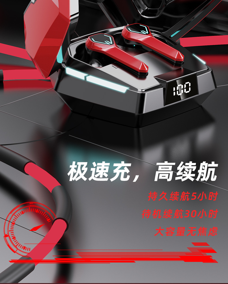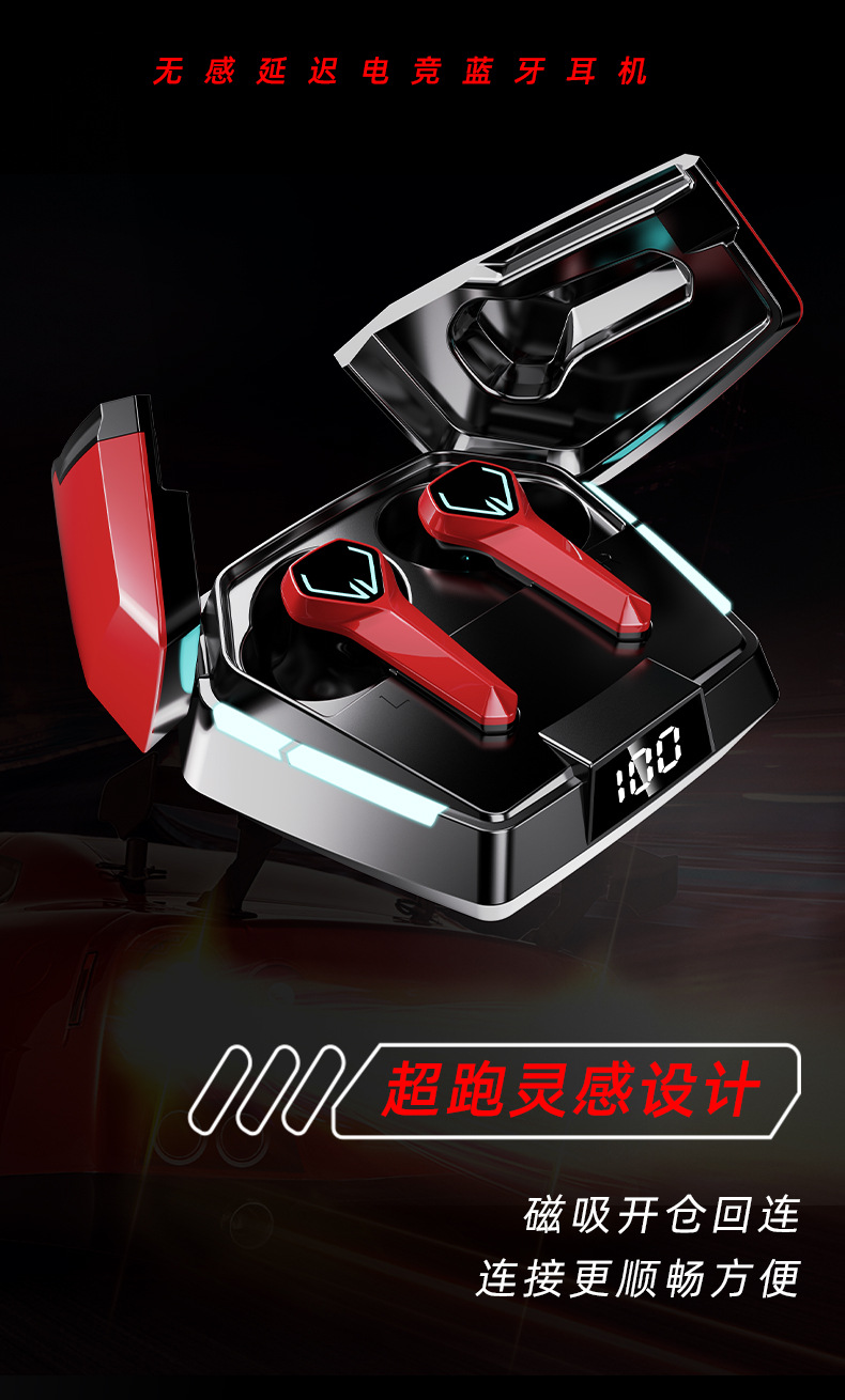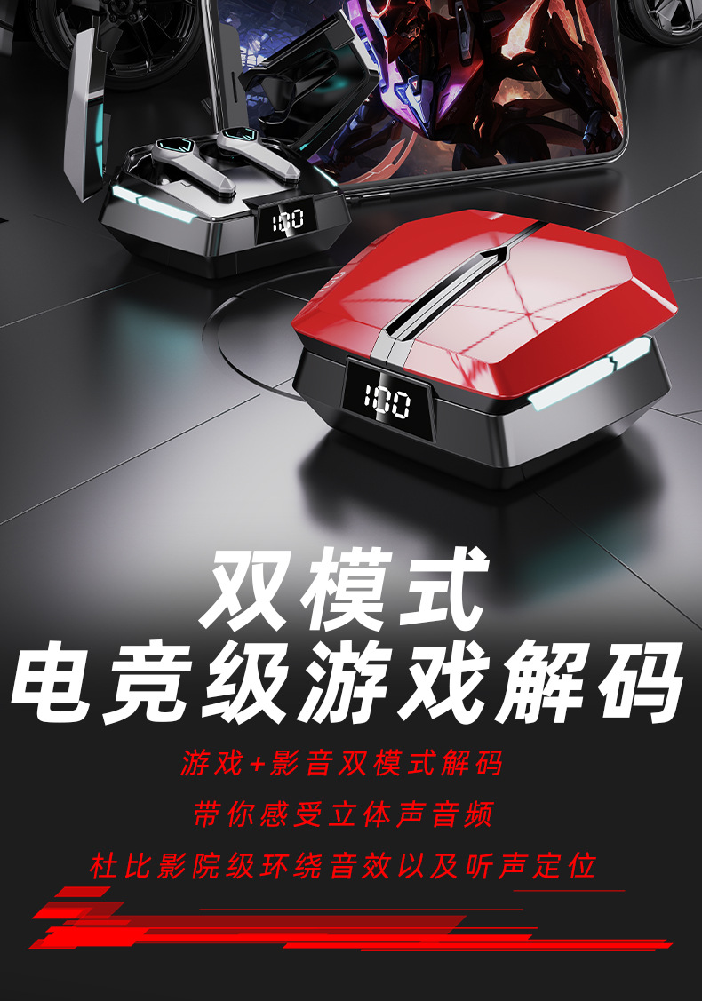 새로운 개인 모델 메카 바람 전기 경쟁 게임 무선 블루투스 헤드셋 긴 수명 낮은 지연 서브 우퍼 패션 디지털 디스플레이스토어 가기