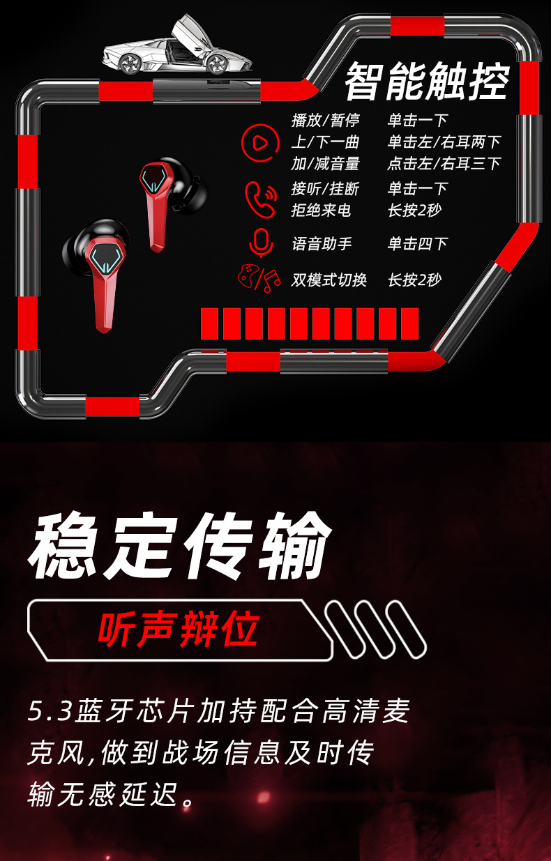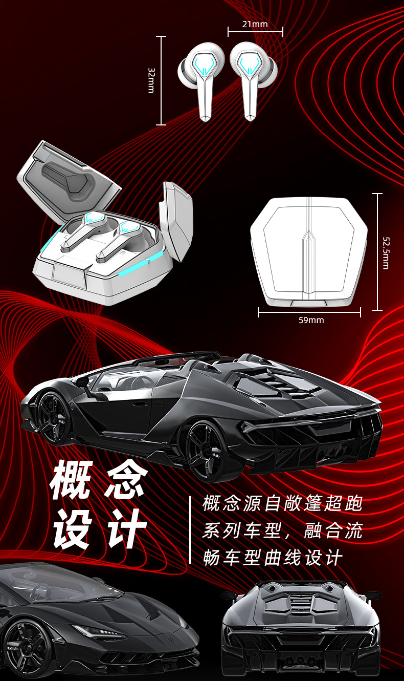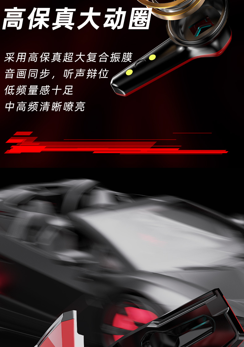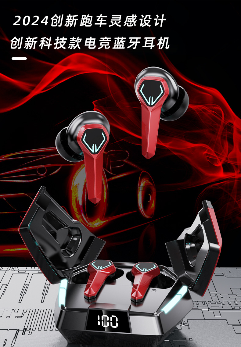 새로운 개인 모델 메카 바람 전기 경쟁 게임 무선 블루투스 헤드셋 긴 수명 낮은 지연 서브 우퍼 패션 디지털 디스플레이스토어 가기