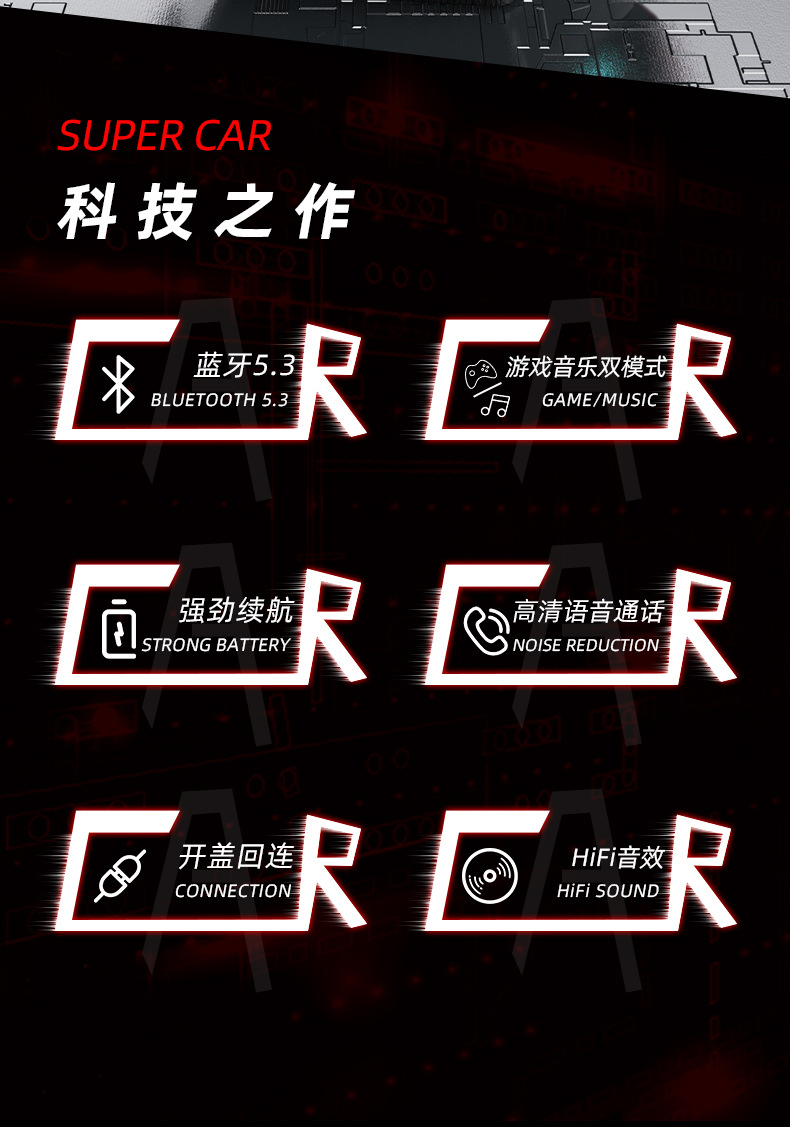 새로운 개인 모델 메카 바람 전기 경쟁 게임 무선 블루투스 헤드셋 긴 수명 낮은 지연 서브 우퍼 패션 디지털 디스플레이