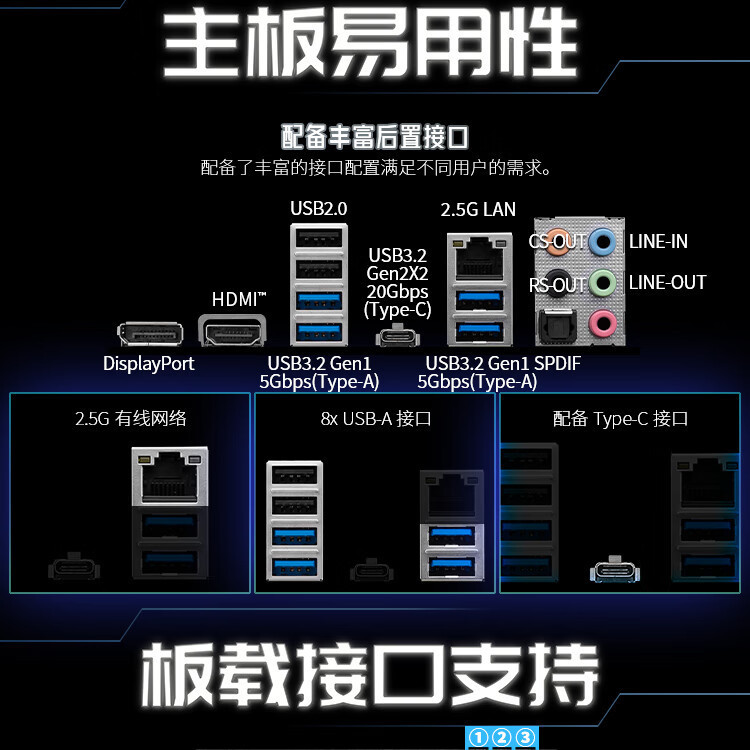 有线网络:Realtek RTL8125BG 2.5Gbps 以太网,支持 MSI LANGuard 网络防护技术,可抵御电涌和静电干扰,提升网络稳定性。