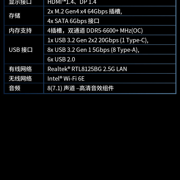 雷电 4 接针:需搭配扩展卡实现雷电 4 功能。