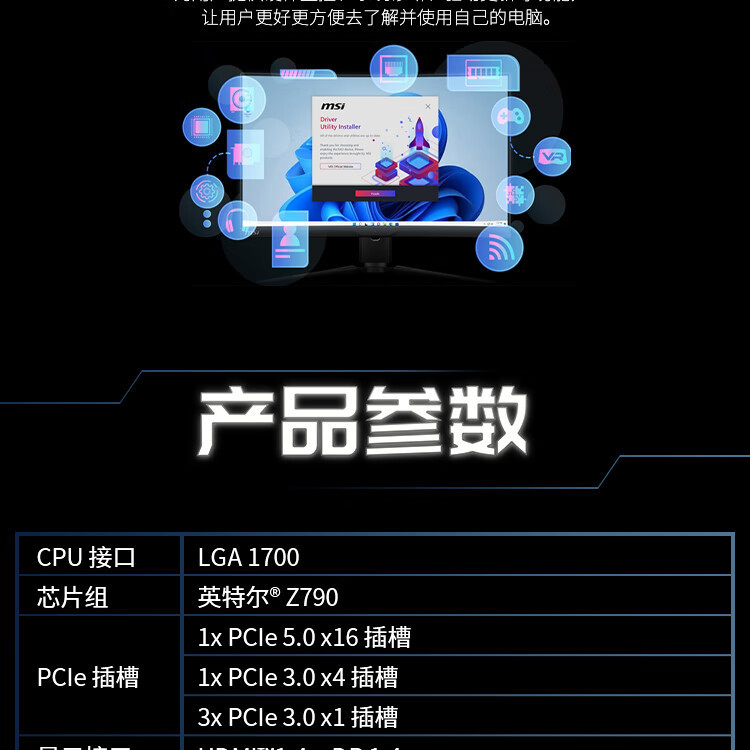 插槽类型:LGA 1700,兼容 Intel 第 12 代(如 i5-12600K、i7-12700K)和 第 13 代(如 i5-13600K、i9-13900K)酷睿处理器。