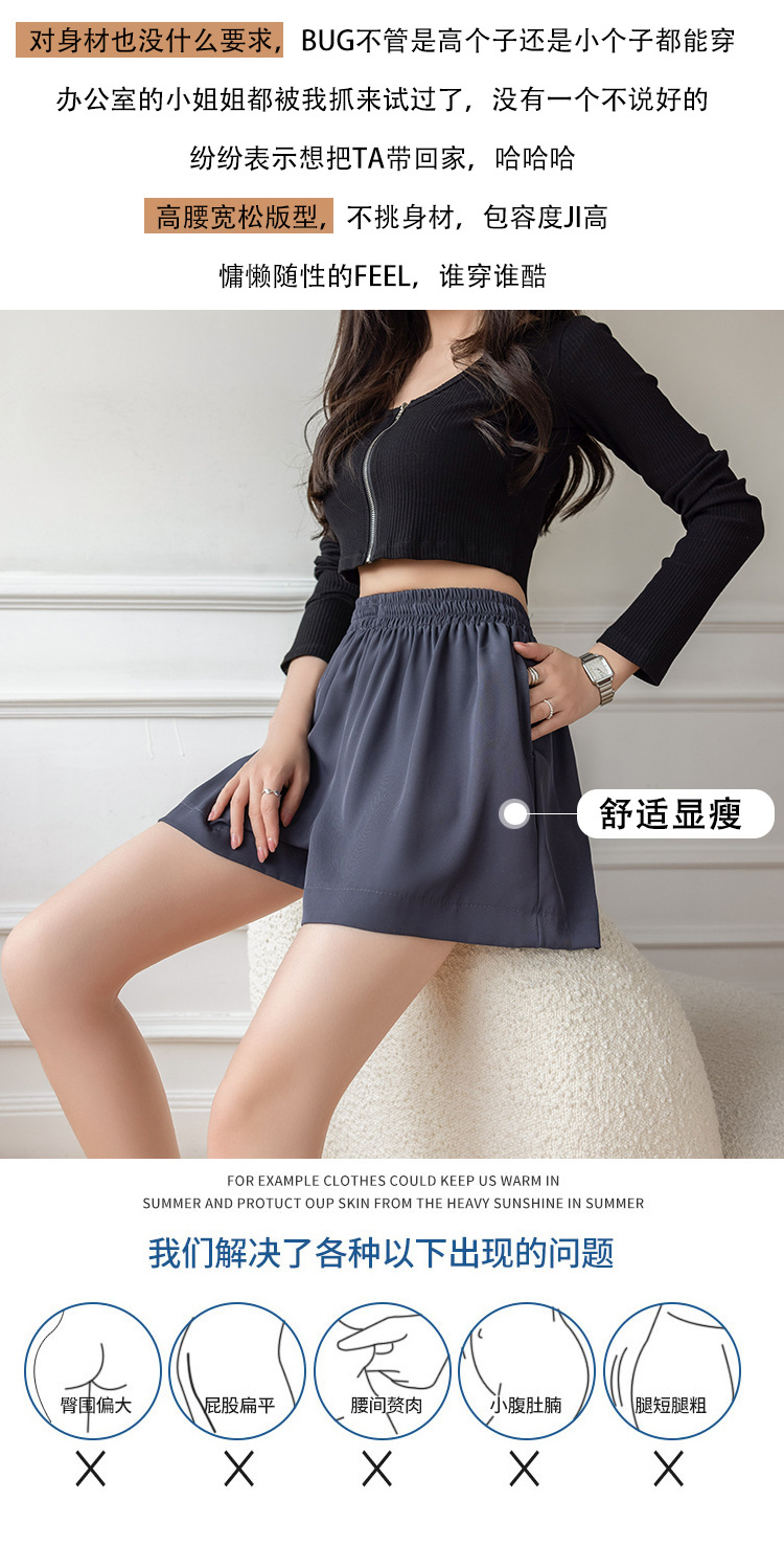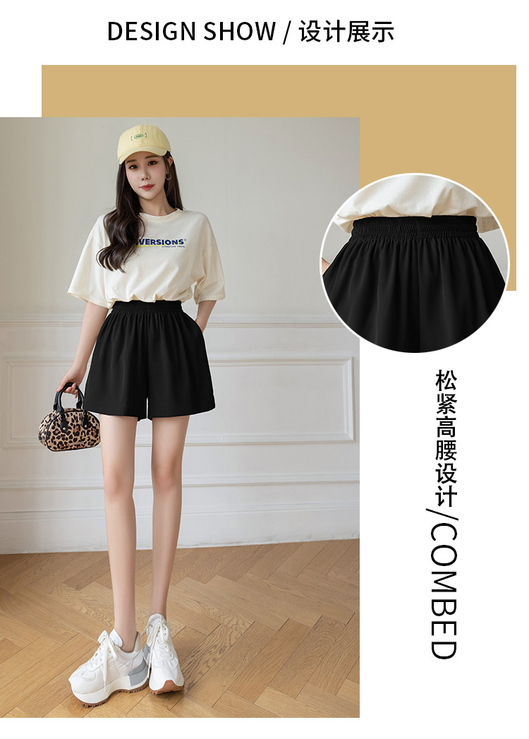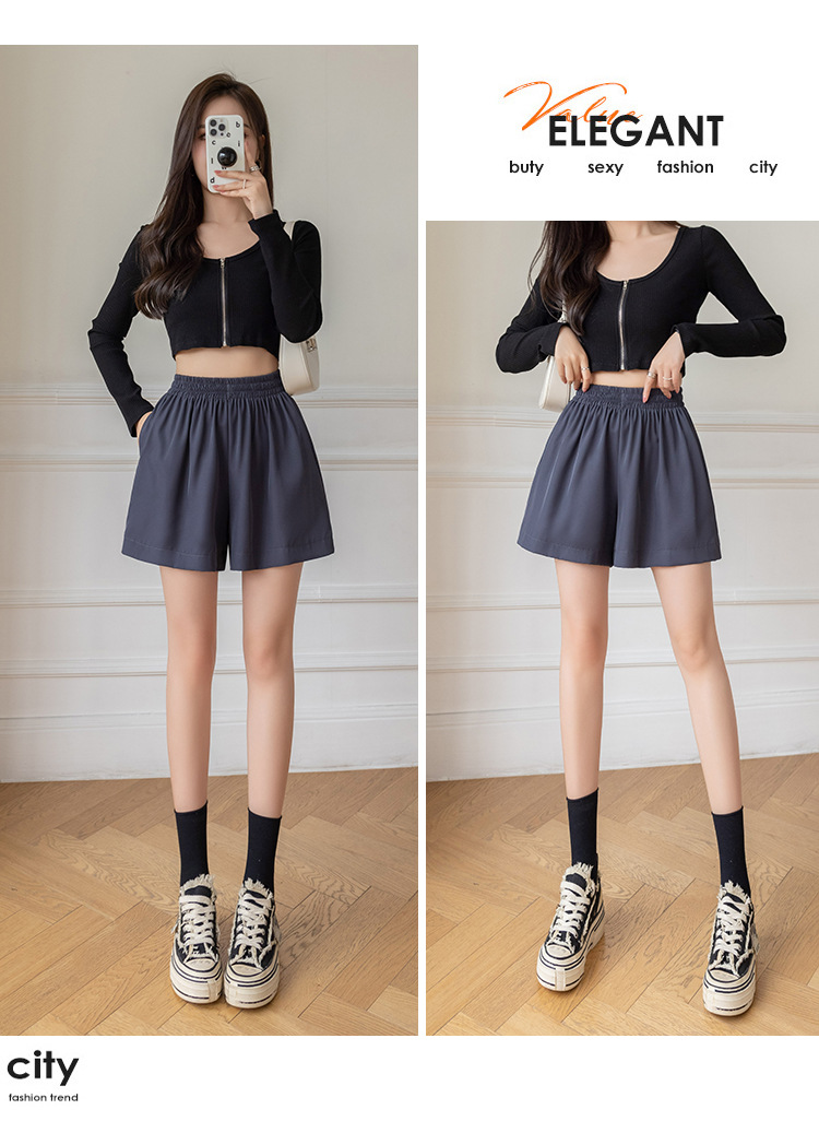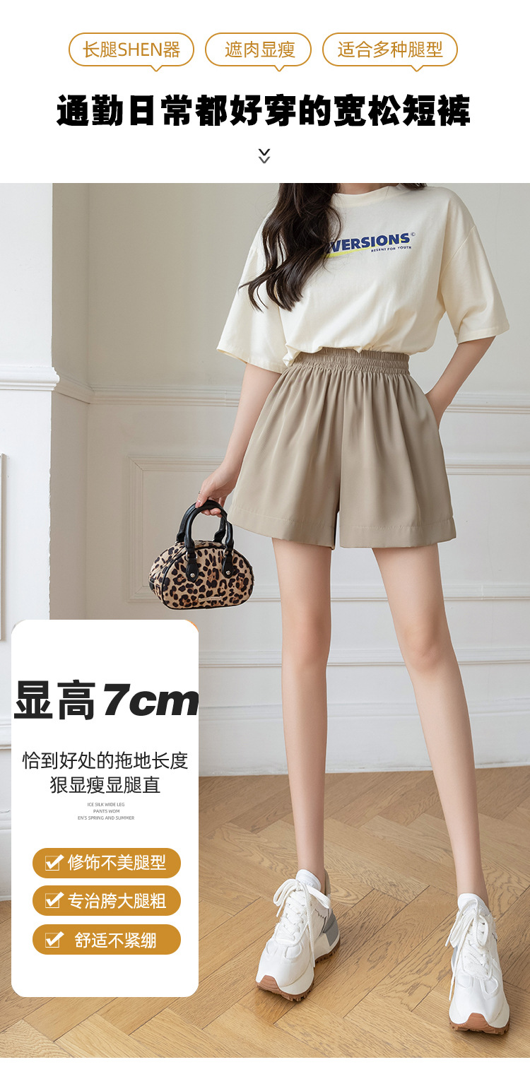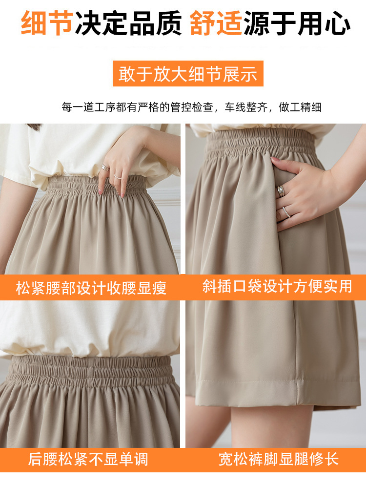 아이스 실크 쉬폰 캐주얼 반바지 여성 여름 얇은 2024 새로운 도착 높은 허리 넓은 다리 바지 작은 남성스토어 가기