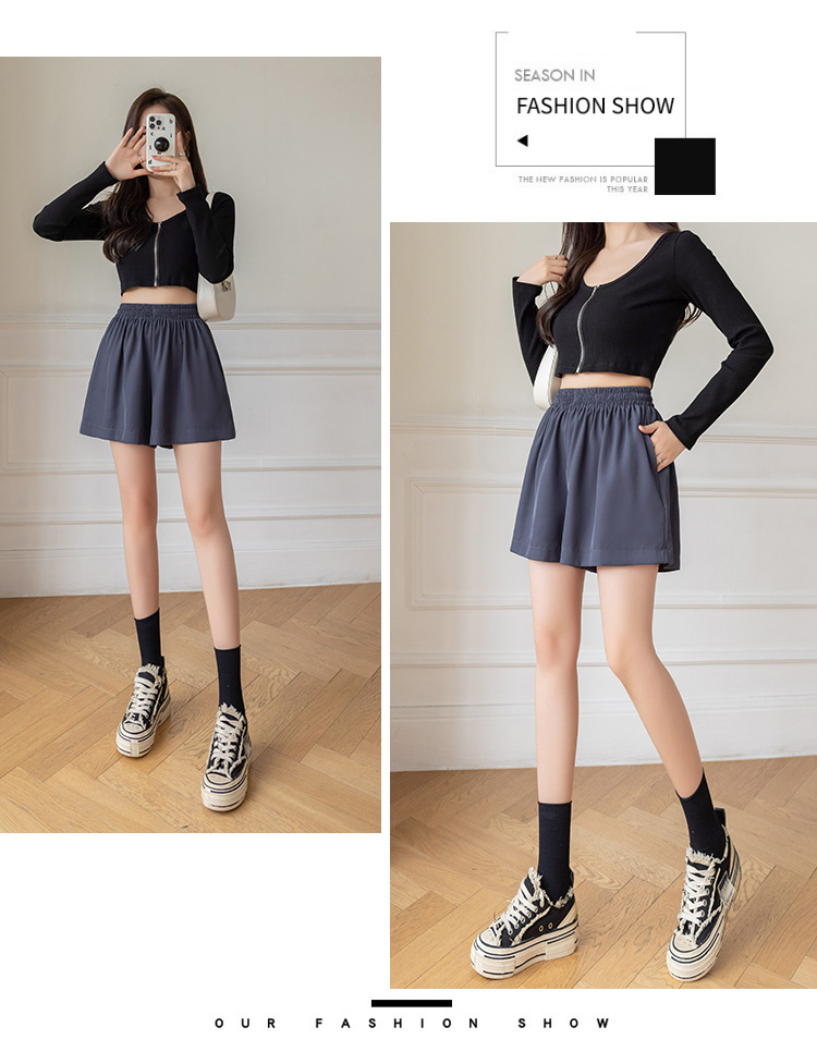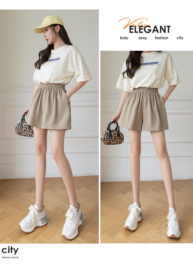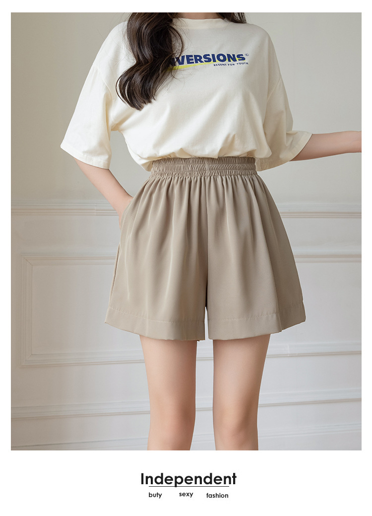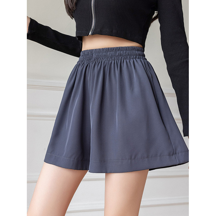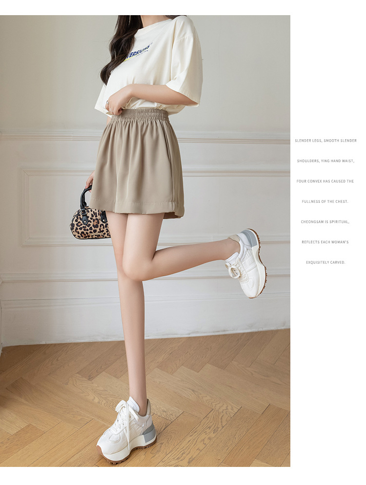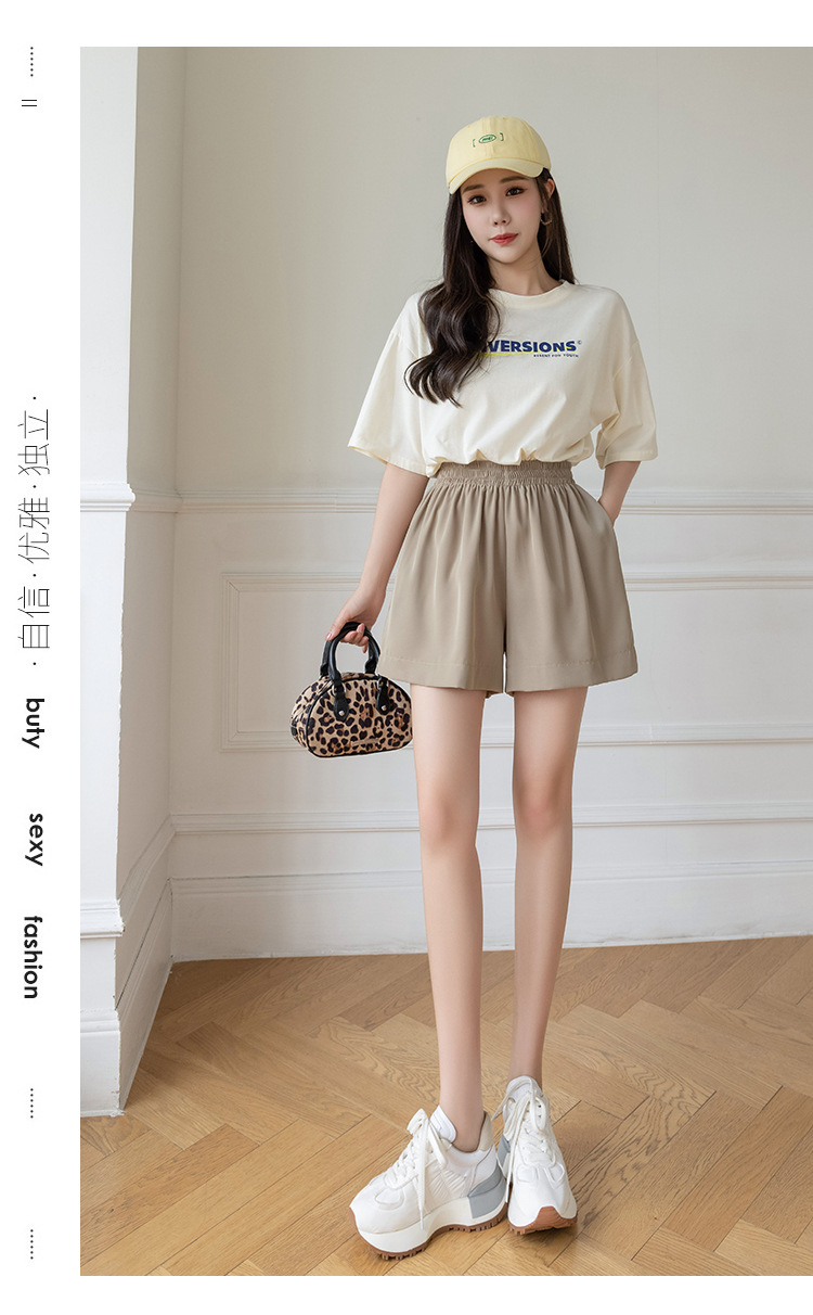 아이스 실크 쉬폰 캐주얼 반바지 여성 여름 얇은 2024 새로운 도착 높은 허리 넓은 다리 바지 작은 남성스토어 가기