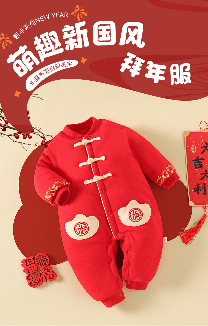 아기 점프 수트 새해 인사말 겨울 여성 신생아 퀼트 가을과 겨울 새해 두껍게 남성 아기 새해 옷 겨울 옷