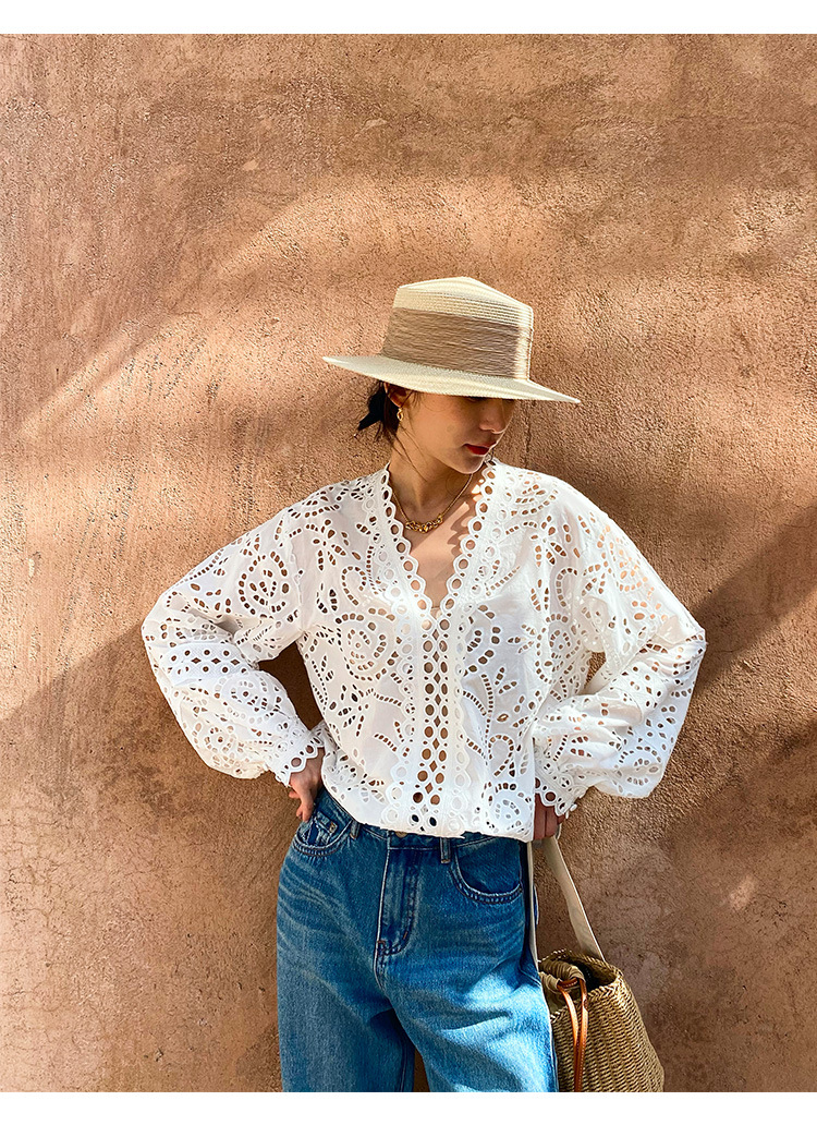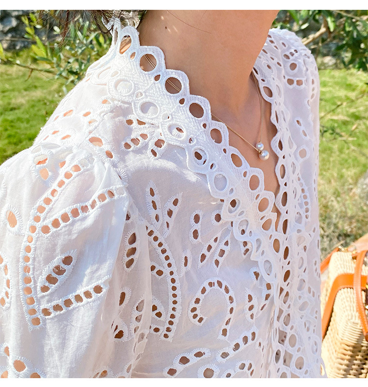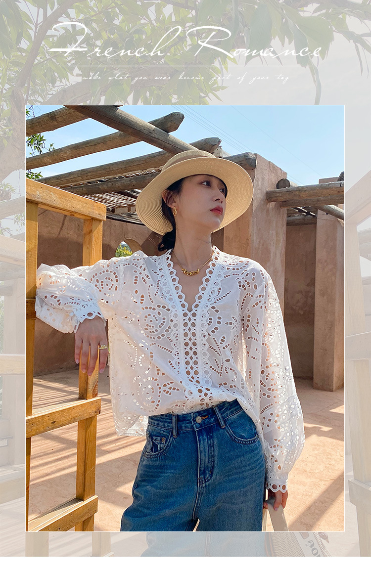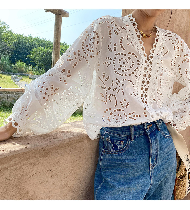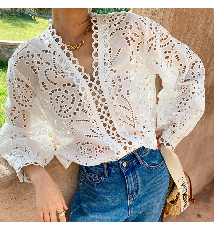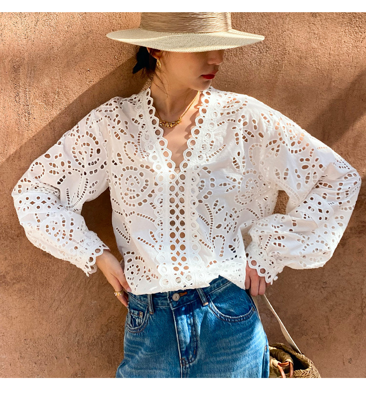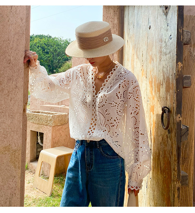 2025 가을 유럽과 미국 면 자수 프랑스 흰색 셔츠 여성 긴팔 디자인 셔츠 여성 심천 Nanyou 여성 의류스토어 가기