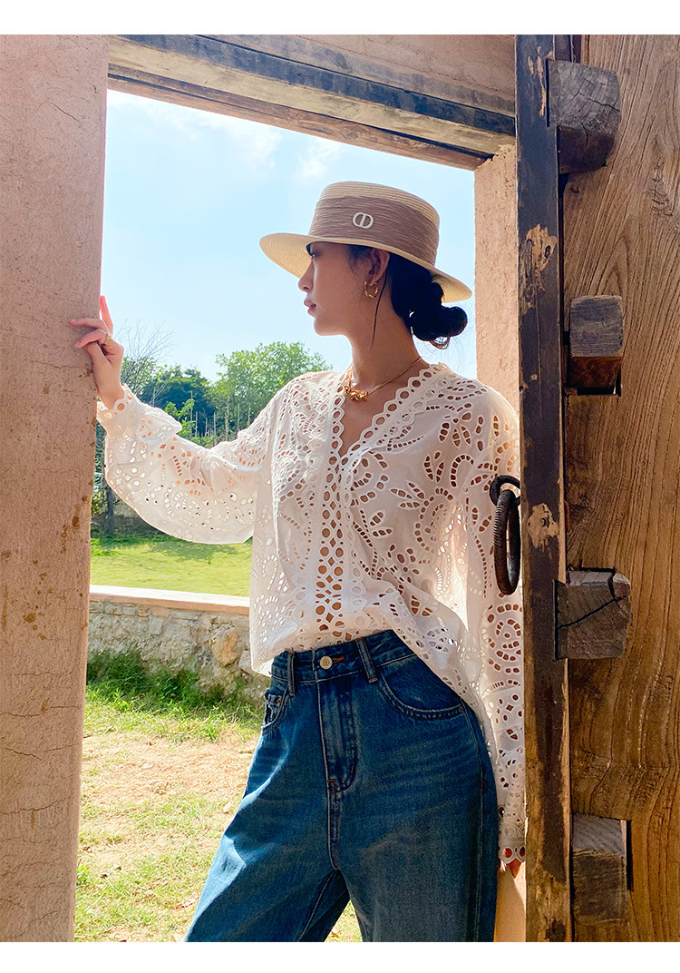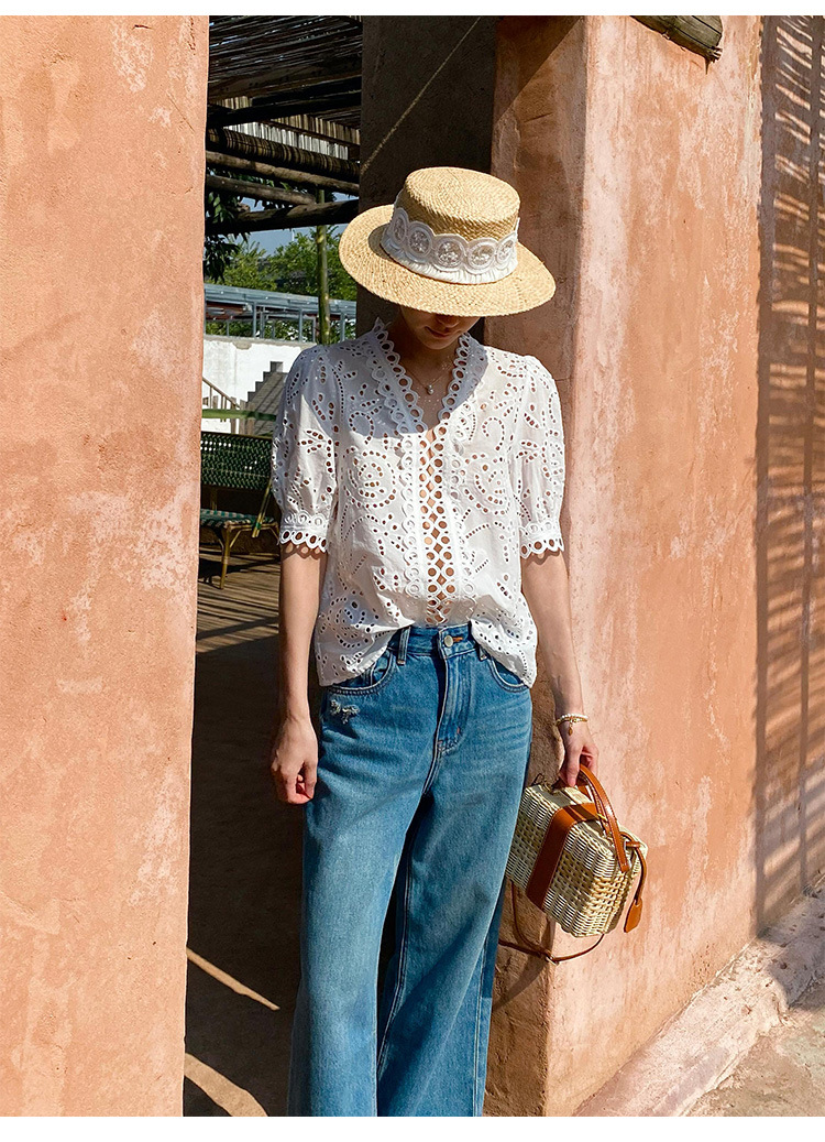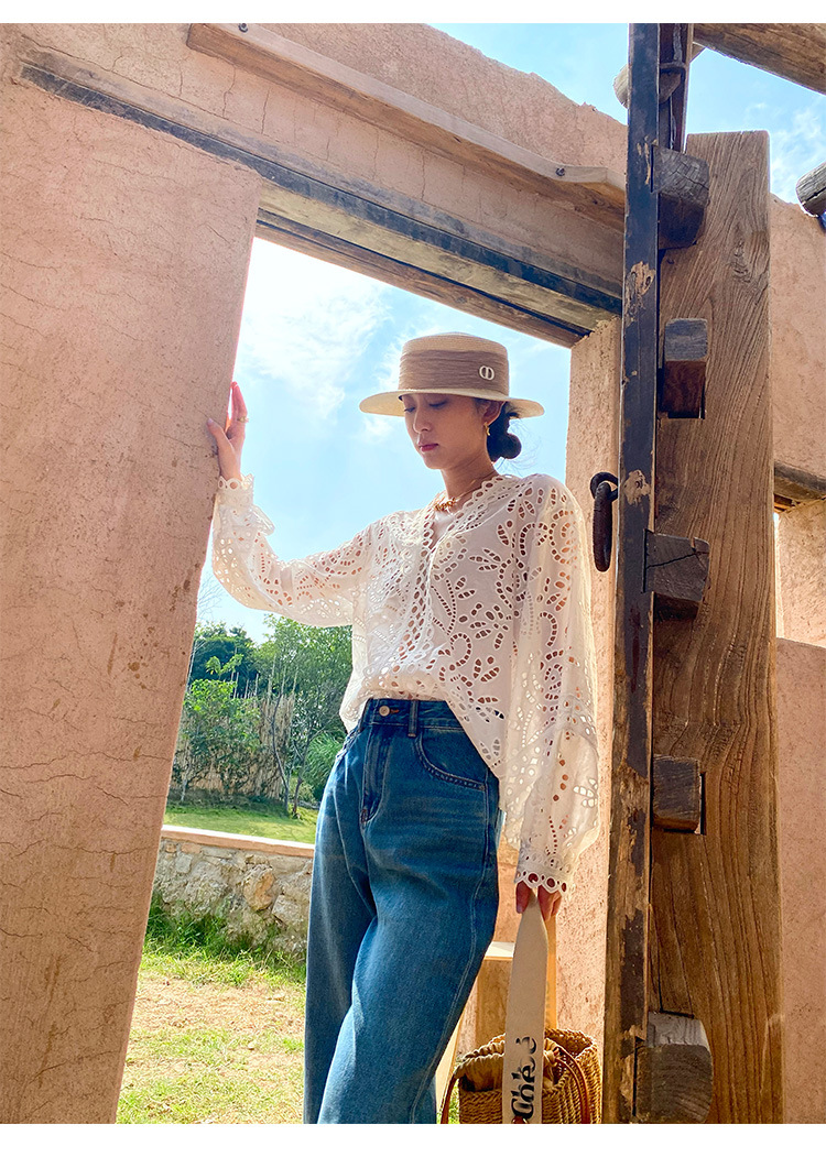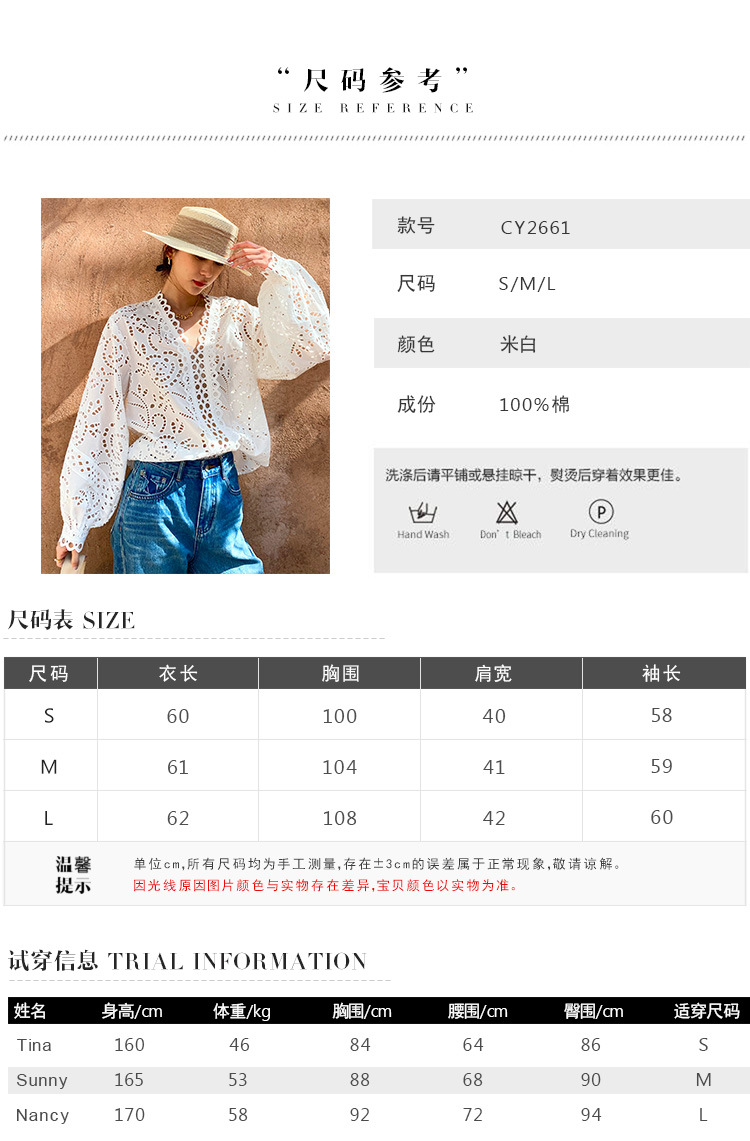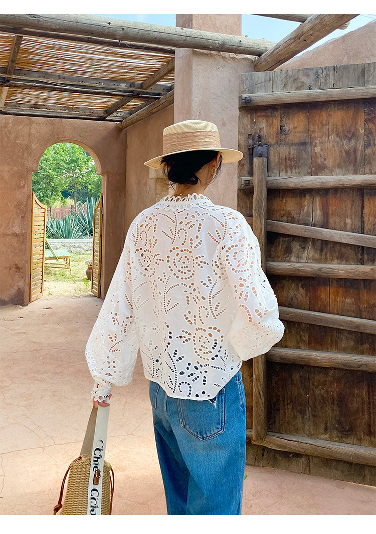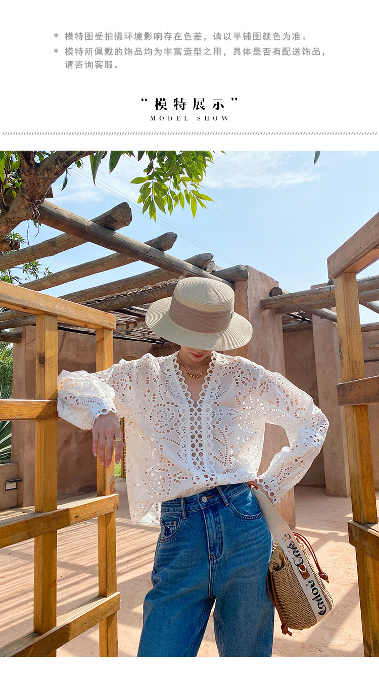 2025 가을 유럽과 미국 면 자수 프랑스 흰색 셔츠 여성 긴팔 디자인 셔츠 여성 심천 Nanyou 여성 의류스토어 가기