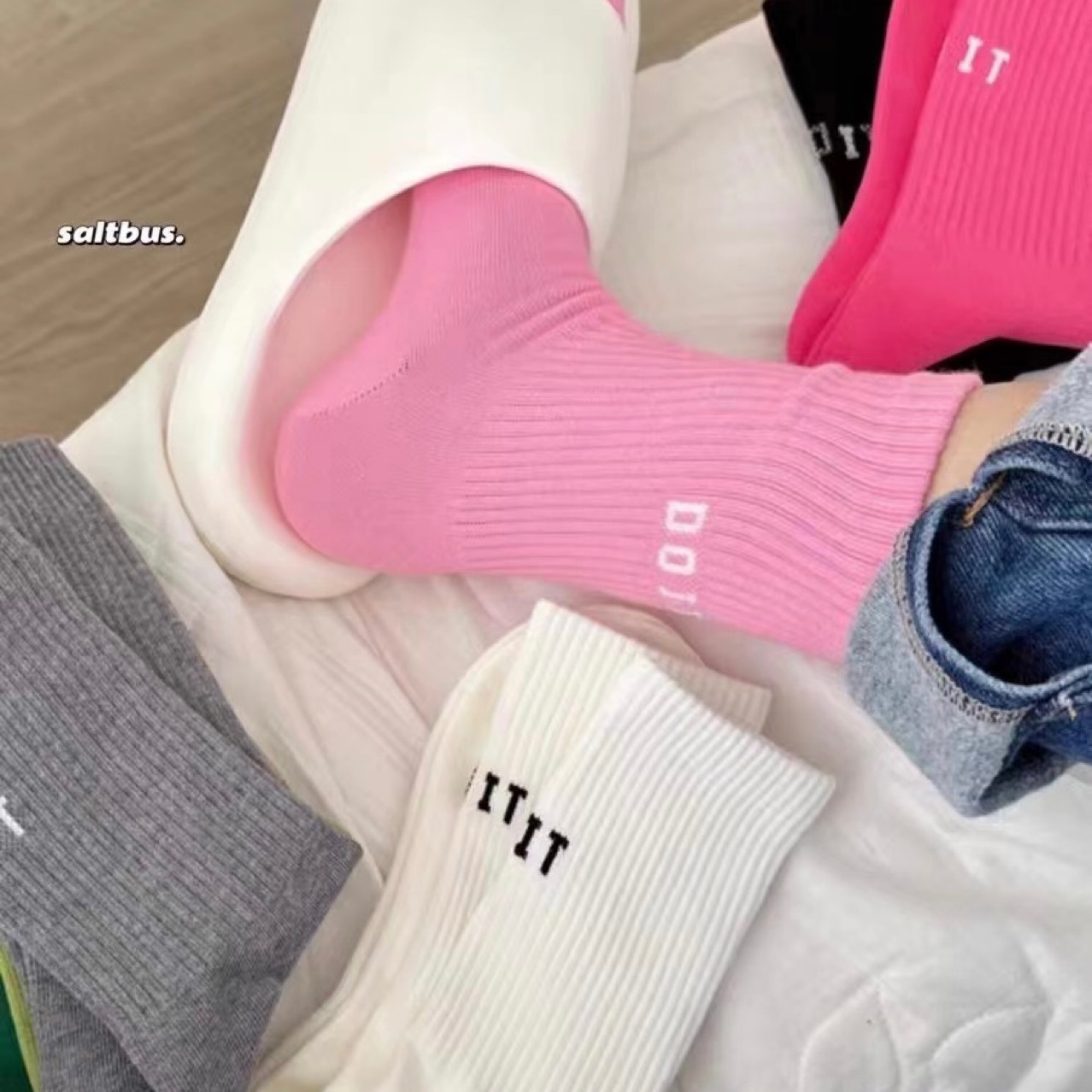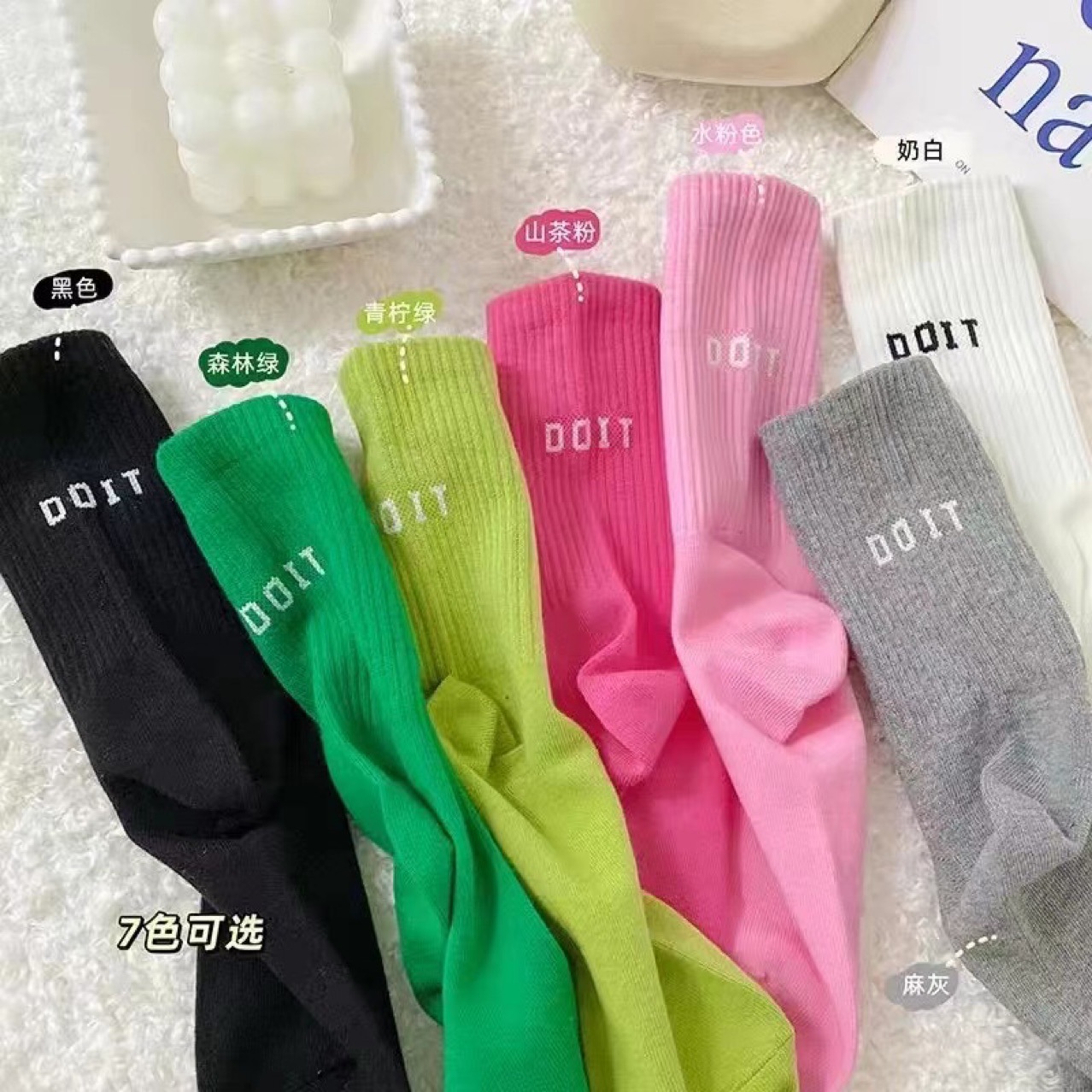 캔디 컬러 올 매치 여성 여름 면화 문자 중반 종아리 길이 양말 일본인은 트렌디 한 달콤한 스포츠 패션 남성과 여성의 양말 편지스토어 가기