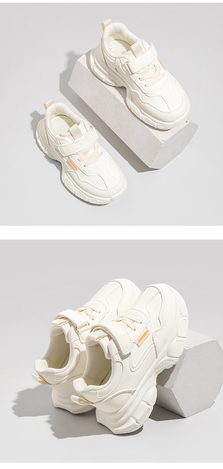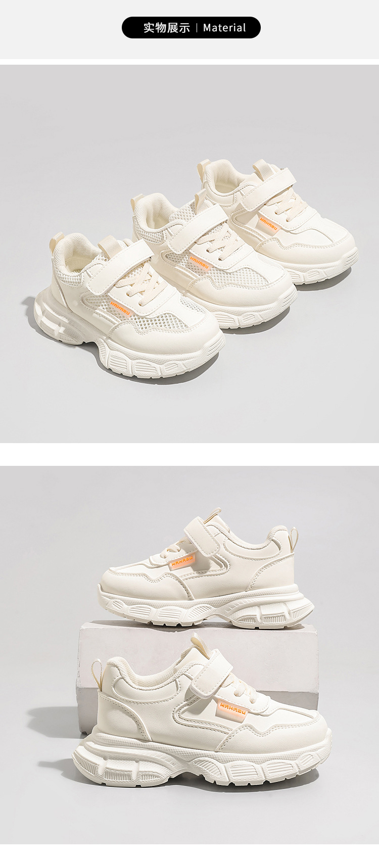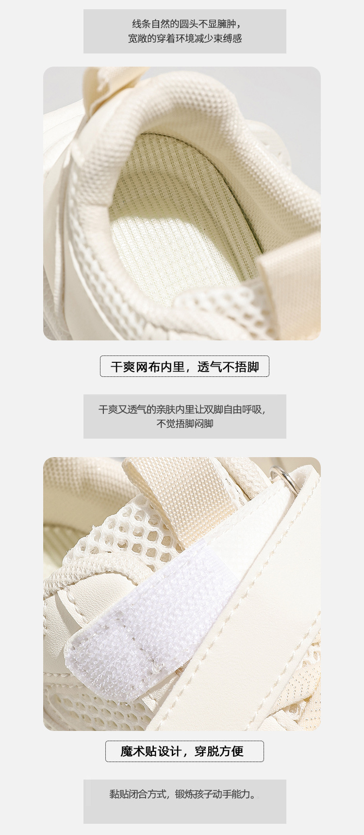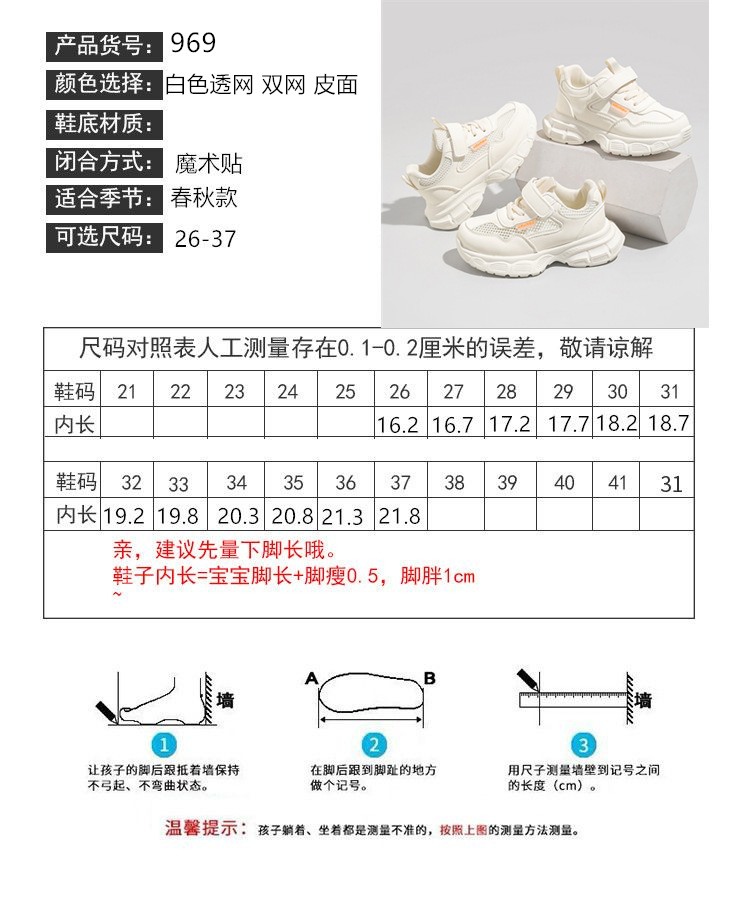 어린이 흰색 운동화 통기성 메쉬 벨크로 캐주얼 흰색 신발스토어 가기