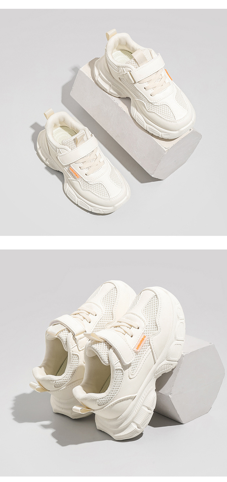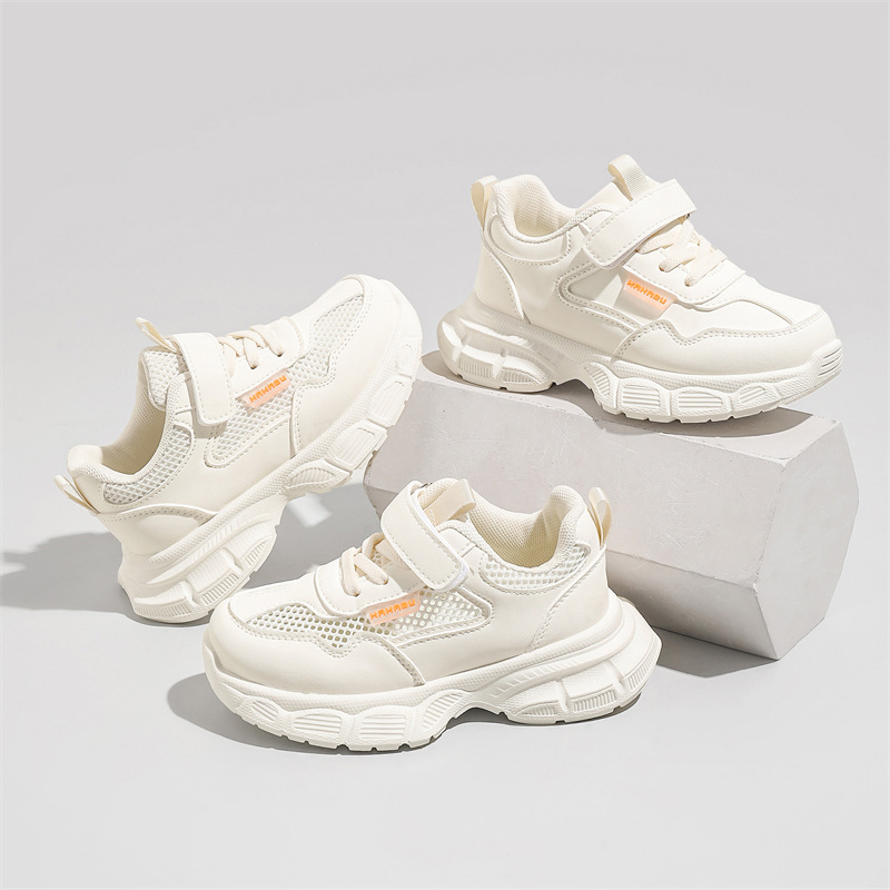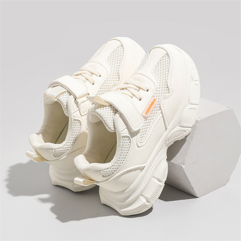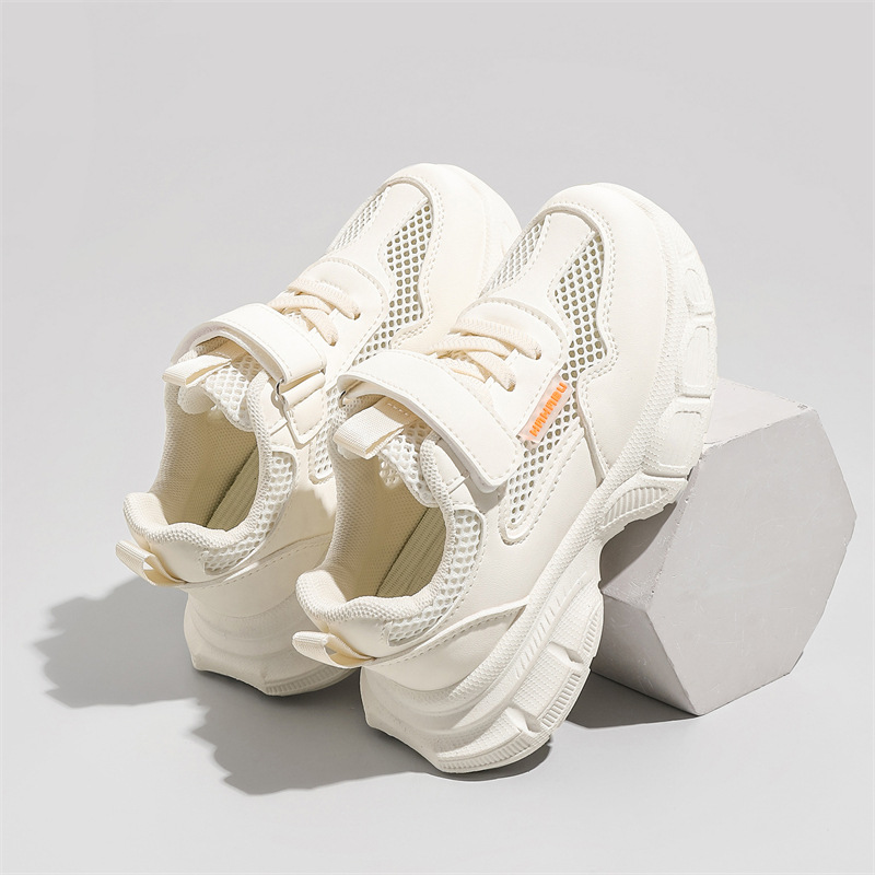 어린이 흰색 운동화 통기성 메쉬 벨크로 캐주얼 흰색 신발