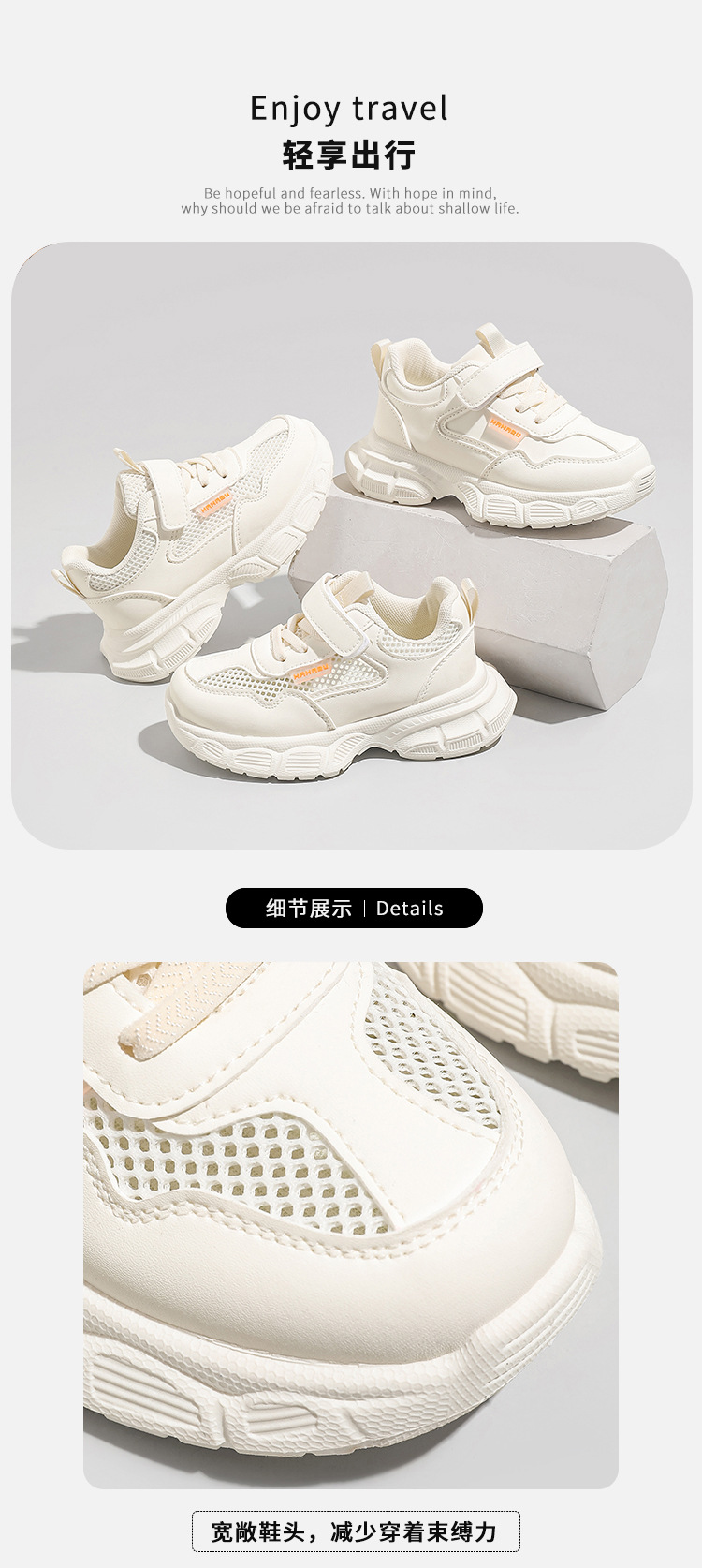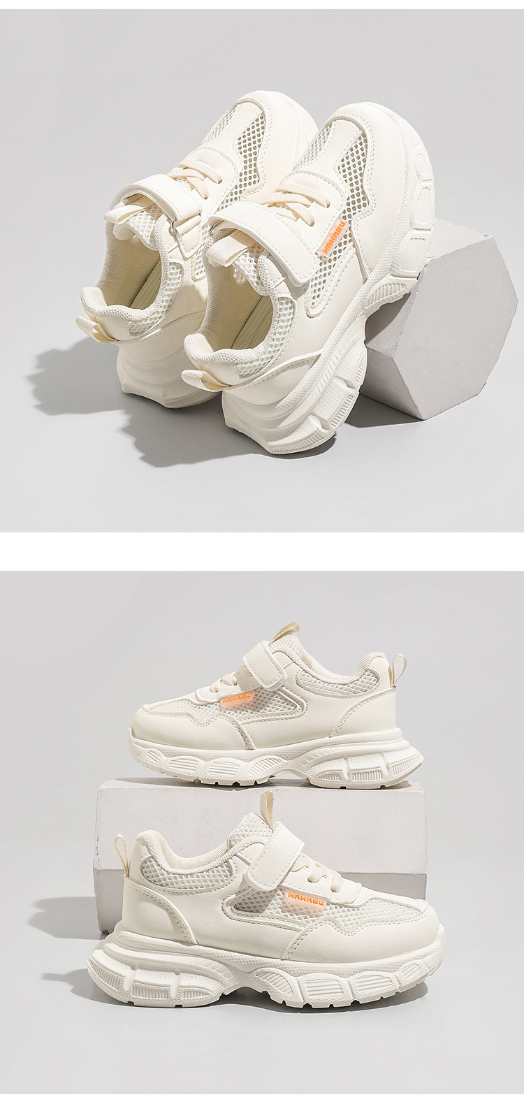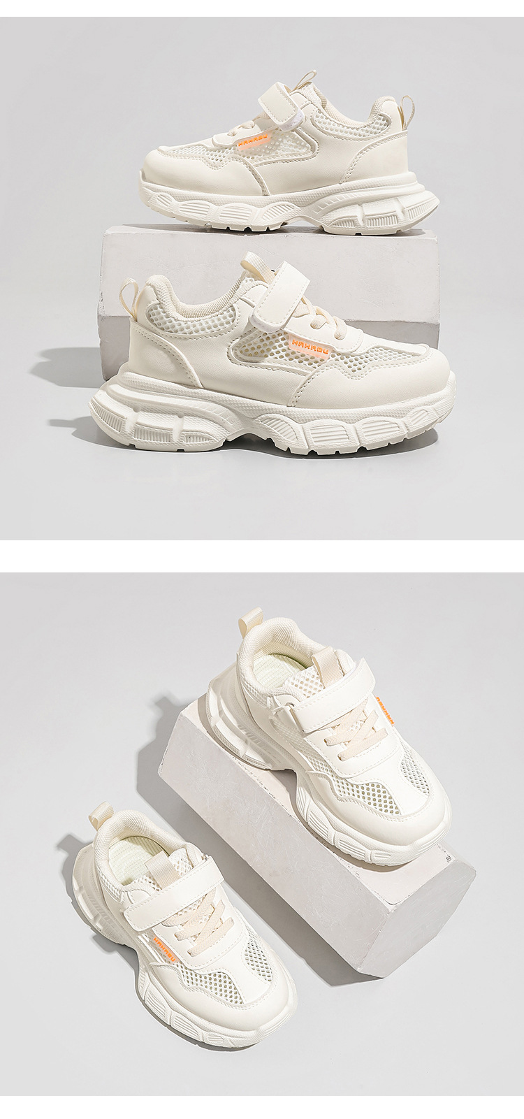 어린이 흰색 운동화 통기성 메쉬 벨크로 캐주얼 흰색 신발