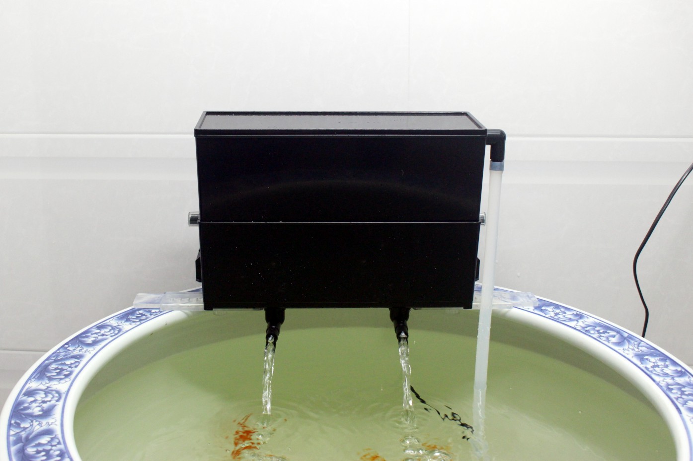 • 15W 워터 펌프와 면 필터 재질을 가진 검은 단일 상자
