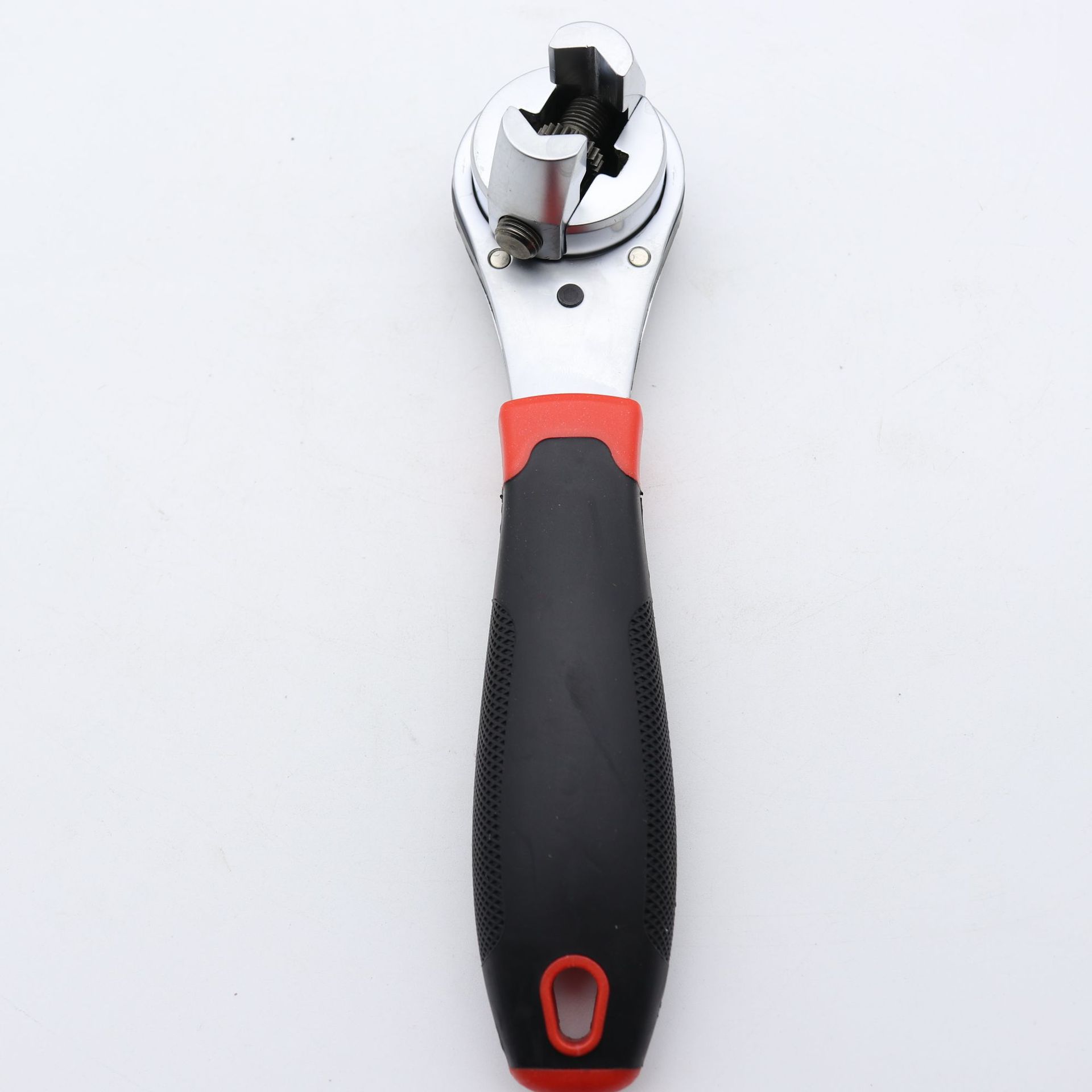 表面镀亮铬,红黑双色手柄,对边尺寸6.35-22.2mm,钳口,轮棘40Cr,螺栓50CRv,适用公制6-22,或英制1/4--7/8螺丝,齿轮等