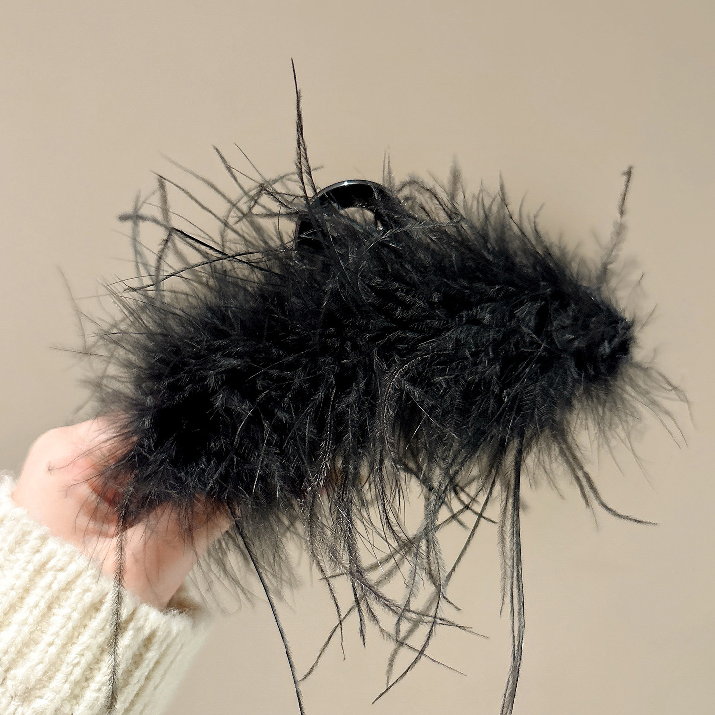 깃털 그랩 클립 여성용 하이 엔드 가을과 겨울 타조 헤어 상어 클립 기질 머리 머리 머리 머리 클립 머리핀 머리 머리핀