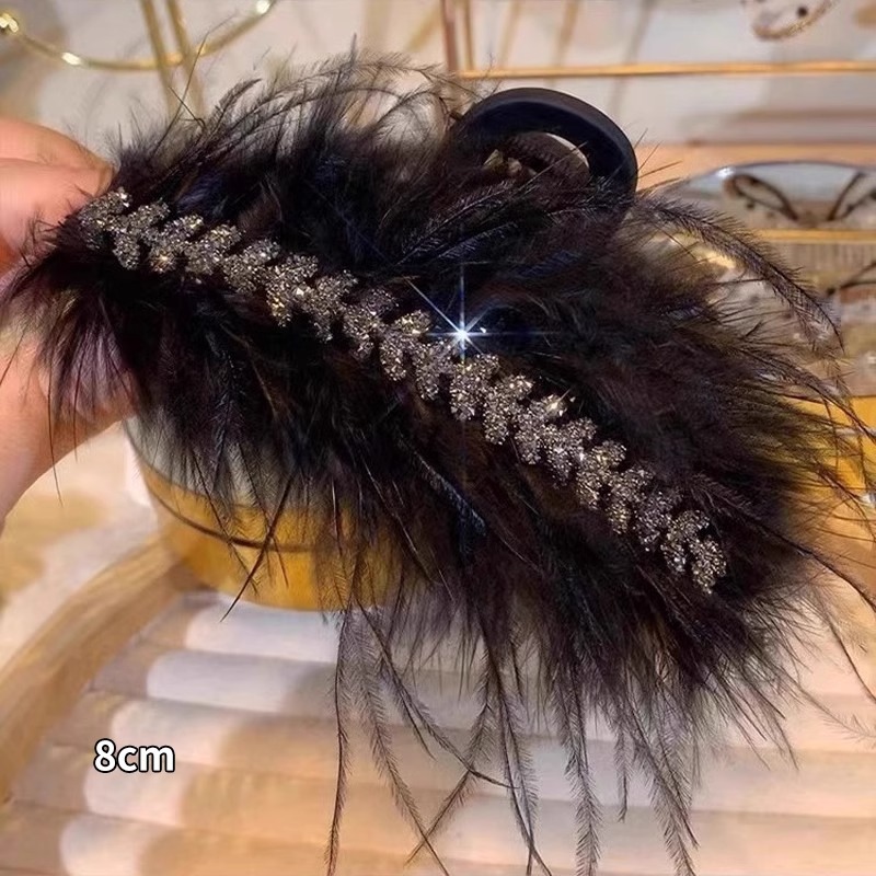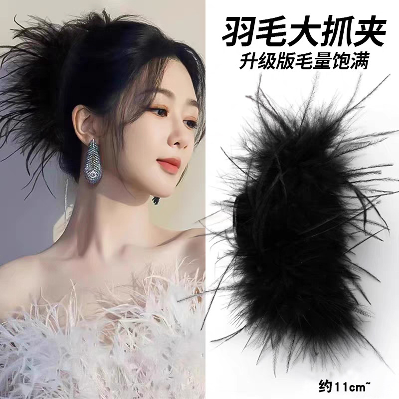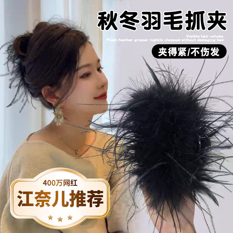 깃털 그랩 클립 여성용 하이 엔드 가을과 겨울 타조 헤어 상어 클립 기질 머리 머리 머리 머리 클립 머리핀 머리 머리핀스토어 가기
