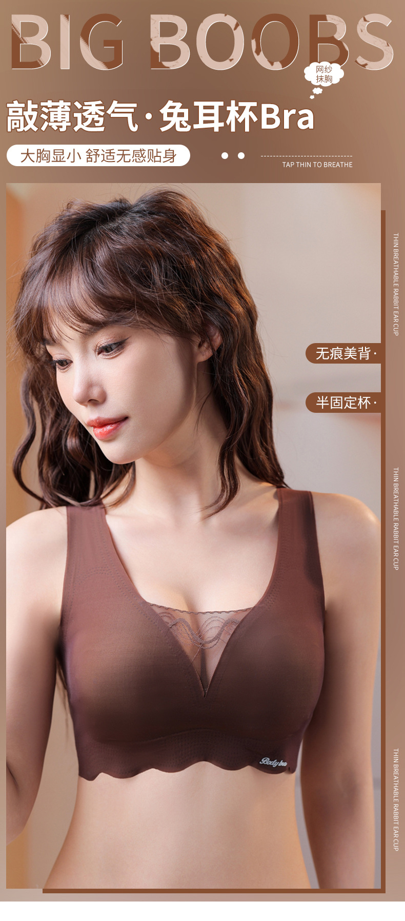 토끼 귀 속옷 여성의 큰 가슴과 작은 가슴 원활한 초박형 뷰티 백 가슴 컬렉션 처짐 방지 무선 브래지어