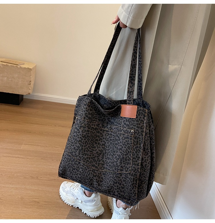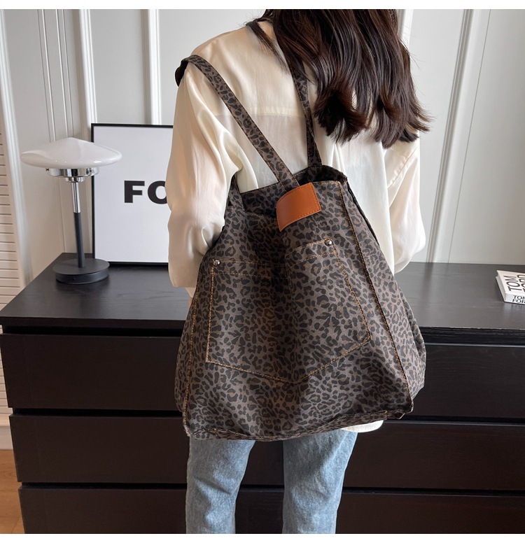 대용량 레오파드 무늬 패션 어깨 가방 여성의 새로운 간단한 개성 토트 백 대형 쇼핑백 모든 경기 여행 가방스토어 가기