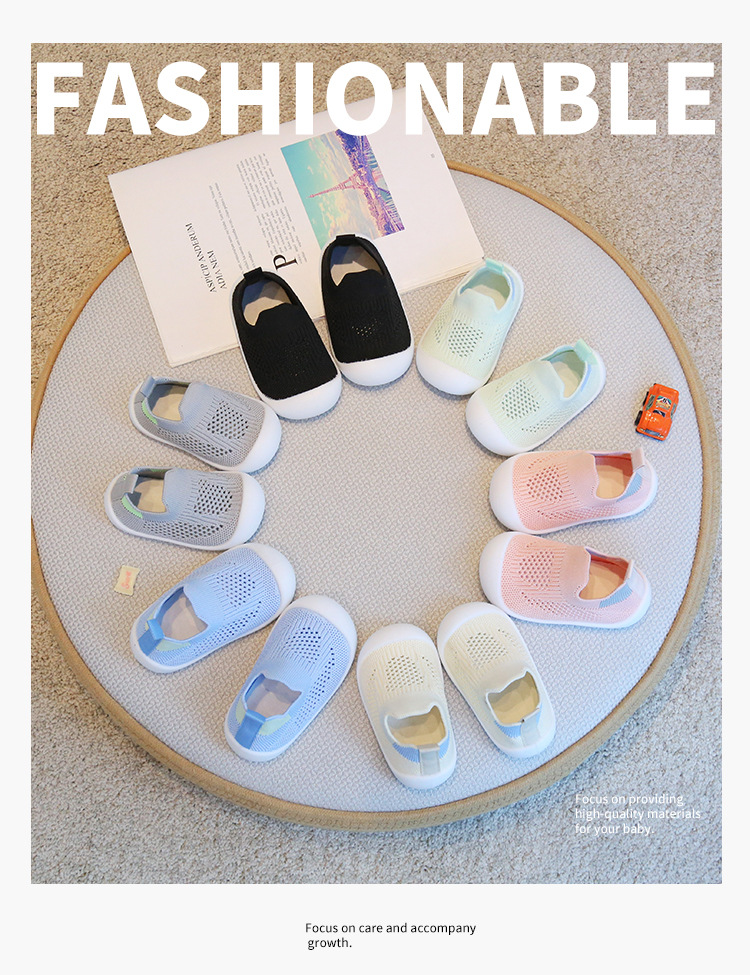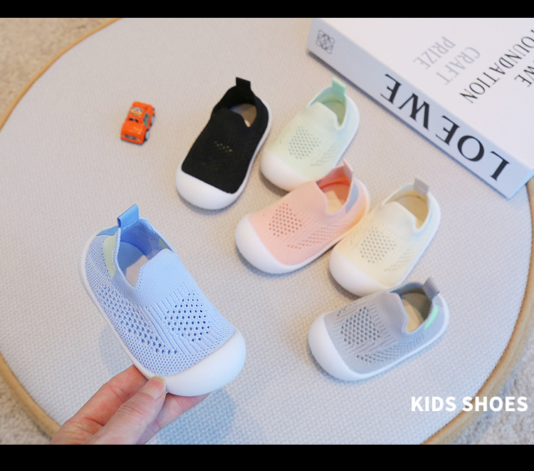 봄과 여름 새로운 어린이 통기성 비행 메쉬 신발 아기의 충돌 방지 부드러운 밑창 유아 신발 캔디 컬러 캐주얼 신발 소년 소녀