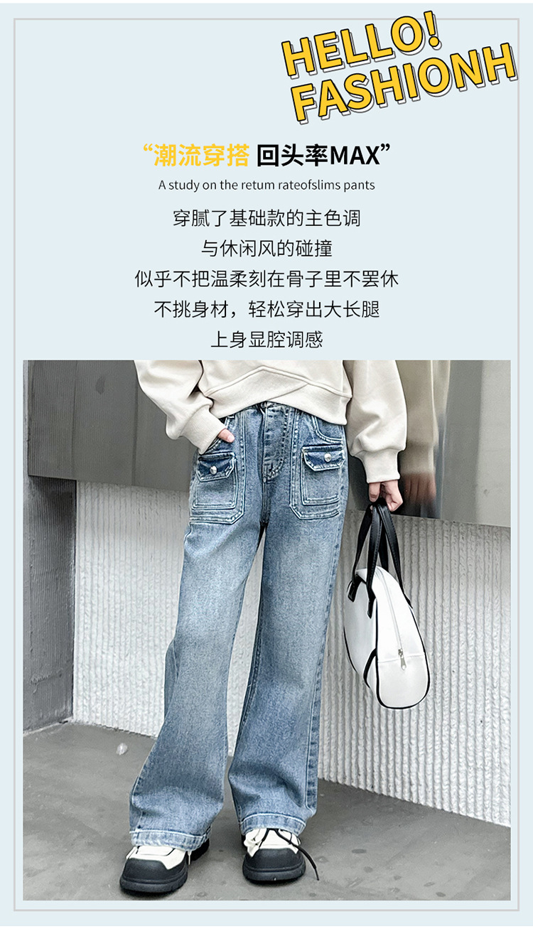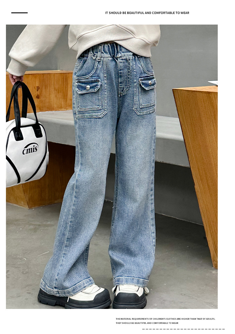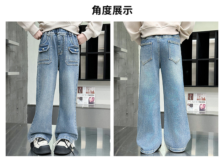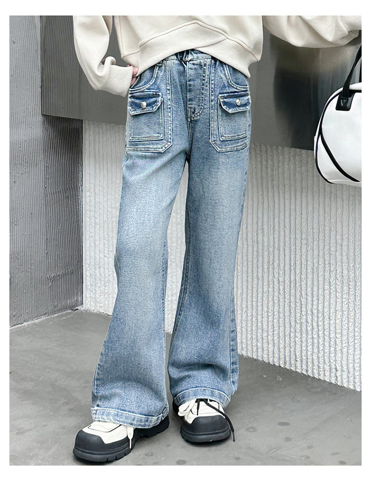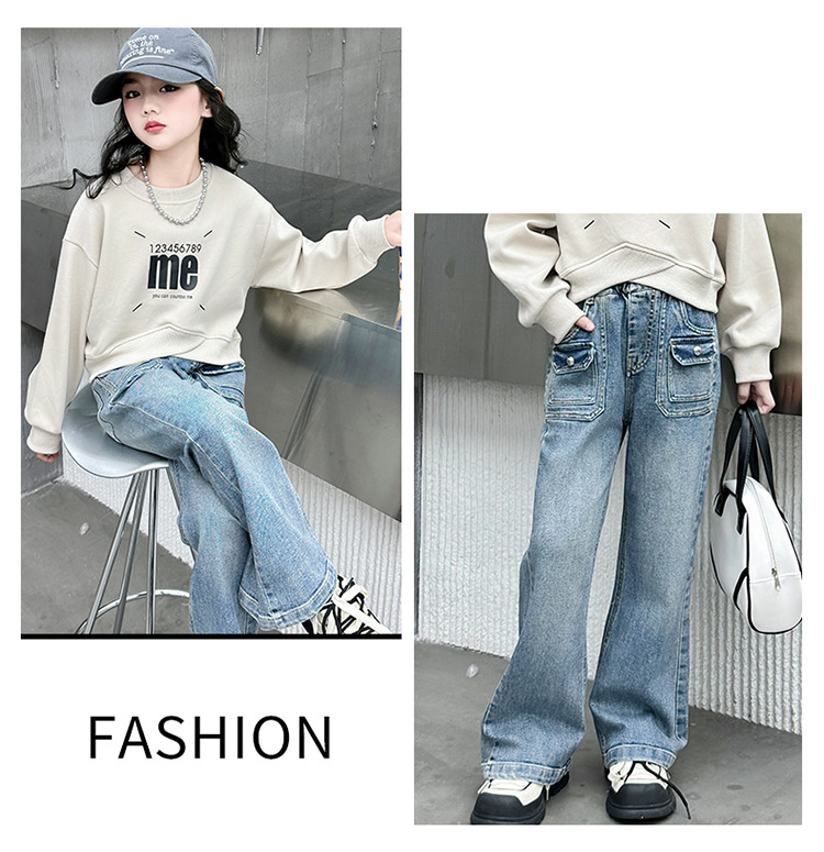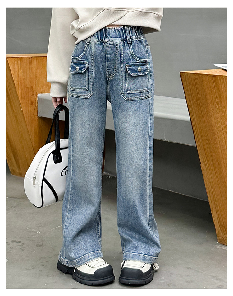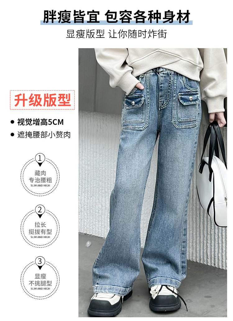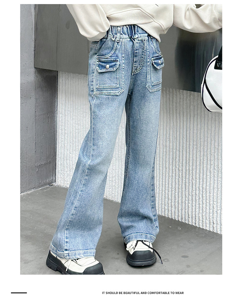 소녀 마이크로 플레어 바지 봄과 가을 2024 새로운 어린이 청바지 봄 온라인 레드 서양식 큰 어린이 소녀 플레어 바지스토어 가기