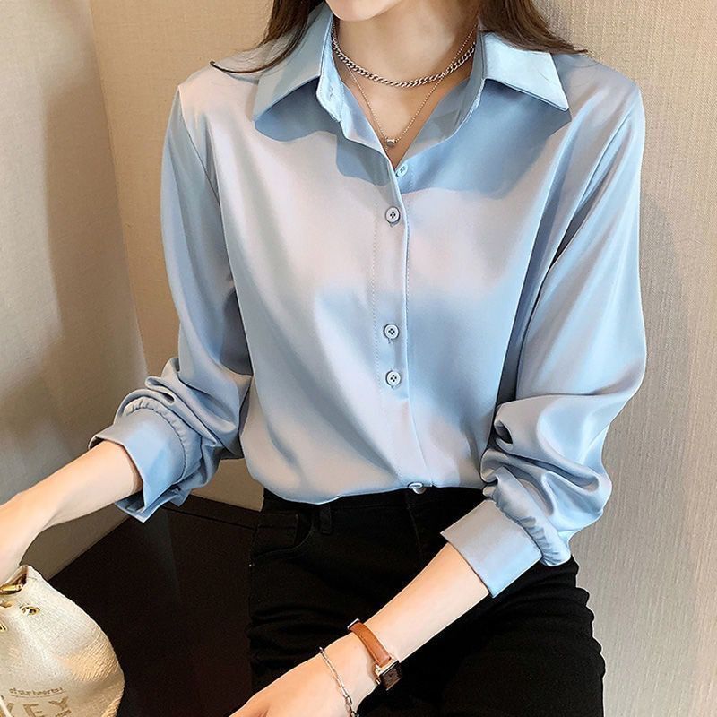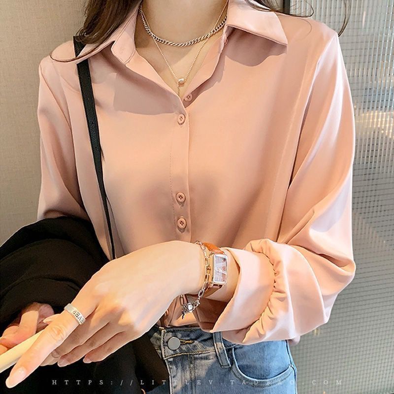2024 봄과 가을 새로운 암호화 된 쉬폰 셔츠 여성 패션 느슨한 슬리밍 디자인 다용도 쌓인 바닥 셔츠 여성스토어 가기