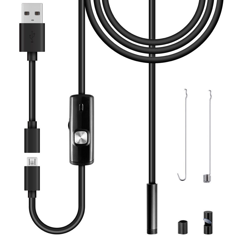 此款安卓内窥镜是一款新型的电子产品。本产品的优点是:尺寸小、重量轻,前端摄像头外壳直径为7mm,中间部位安装一个控制盒(调节灯光和拍照按键。注:拍照按键仅电脑使用时可以支持使用。手机可以通过使用的软件进行拍照),可以调节六个LED灯的亮度,捕捉图像后拍照直接拍照存储在安卓手机内,可以录像,记录检查的整个过程,方便后续的观察和分析.