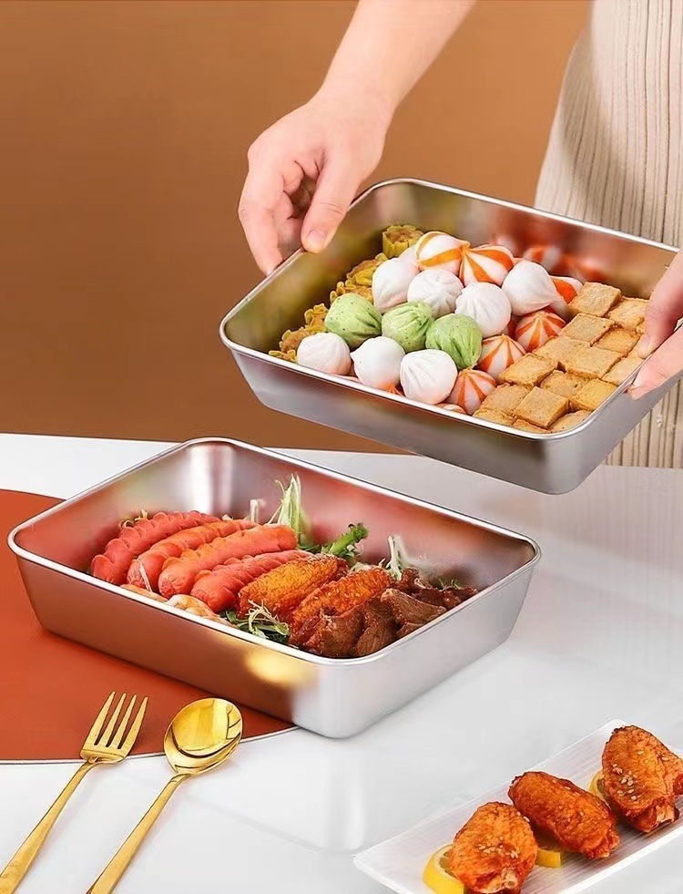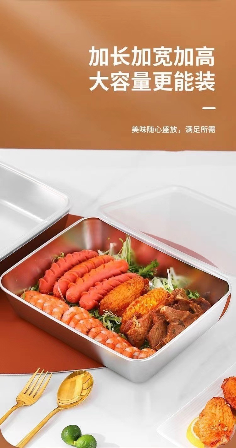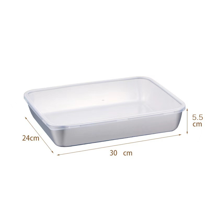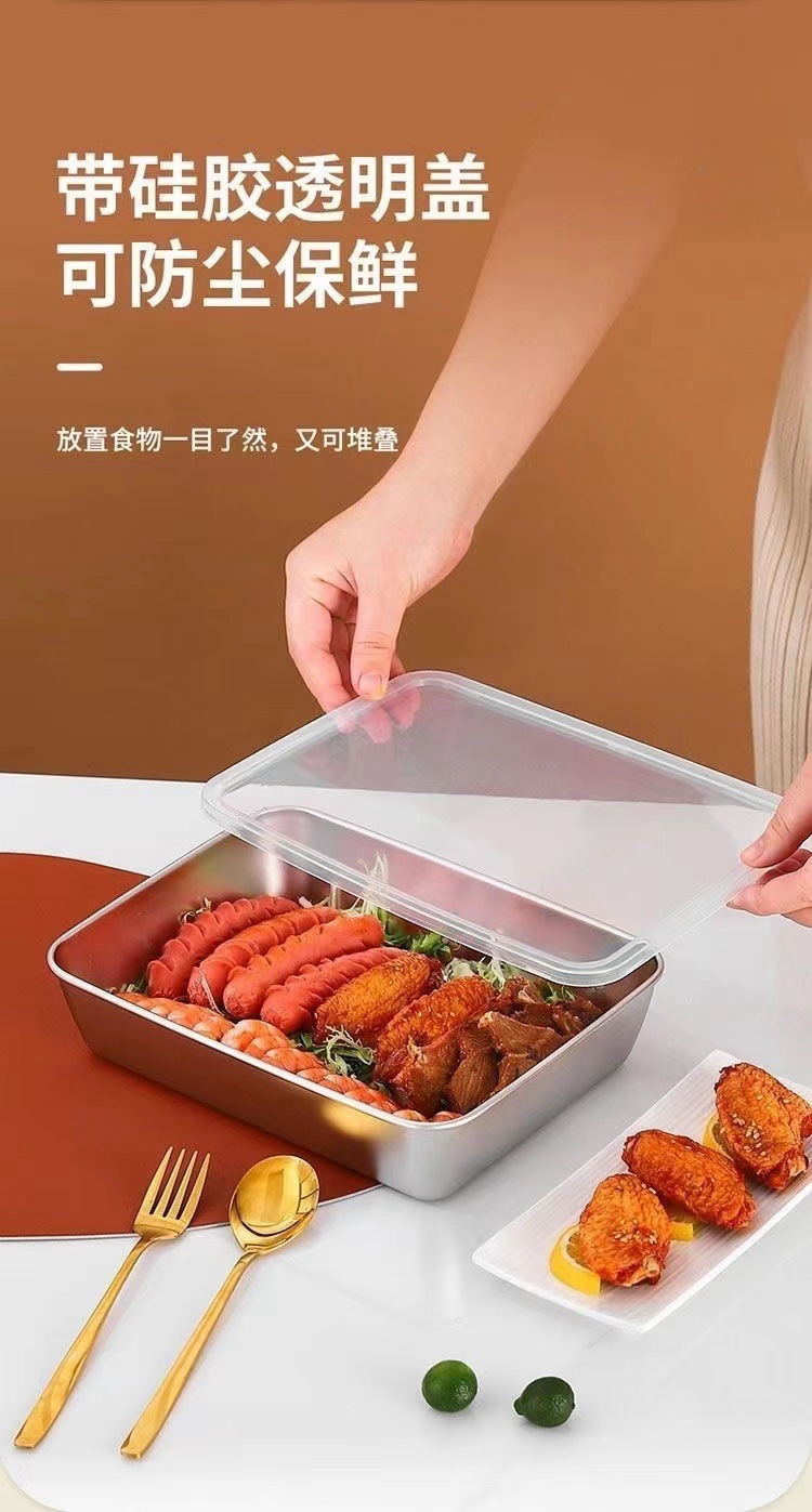 뚜껑이 달린 스테인레스 스틸 스퀘어 플레이트 직사각형 신선한 보관 상자 차가운 접시 신선한 절인 상자 티라미수 다중 사용 타월 플레이트
