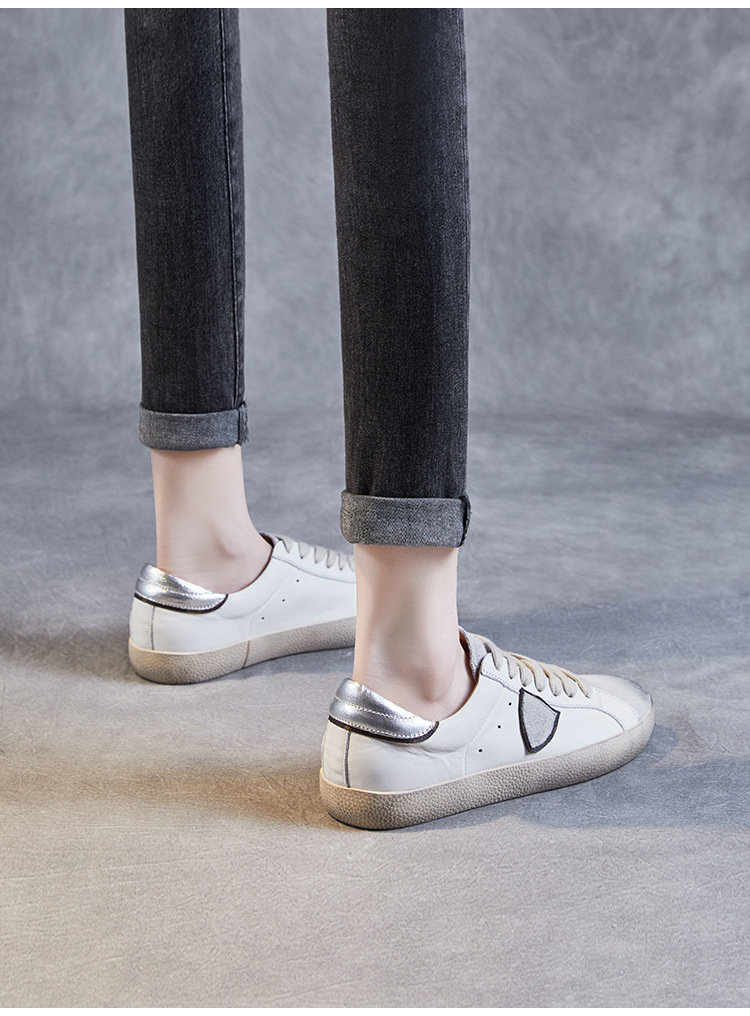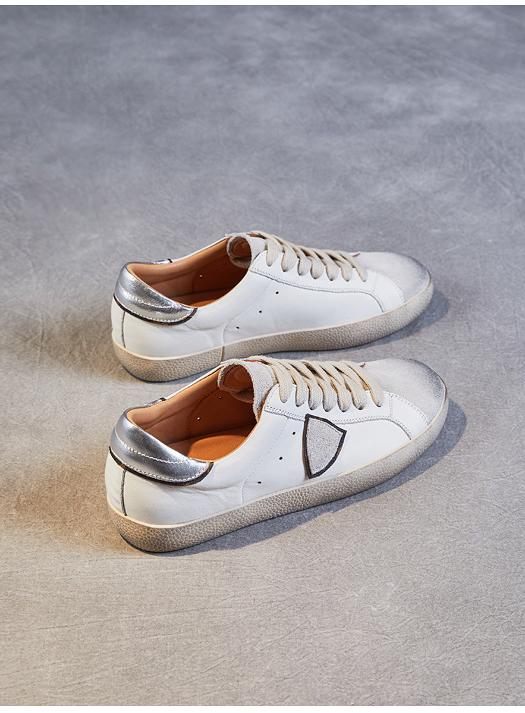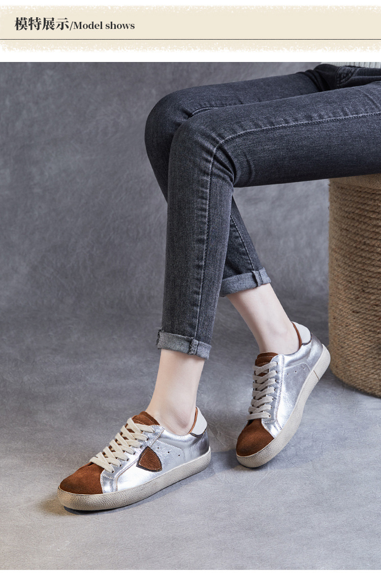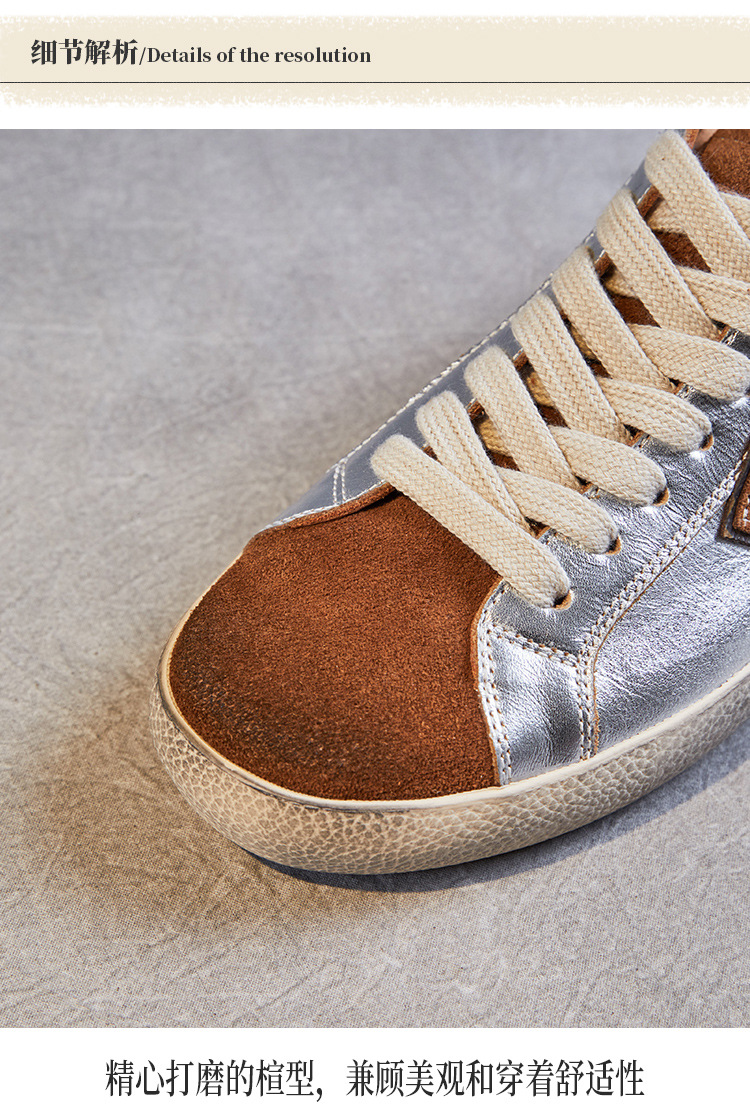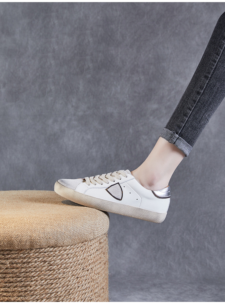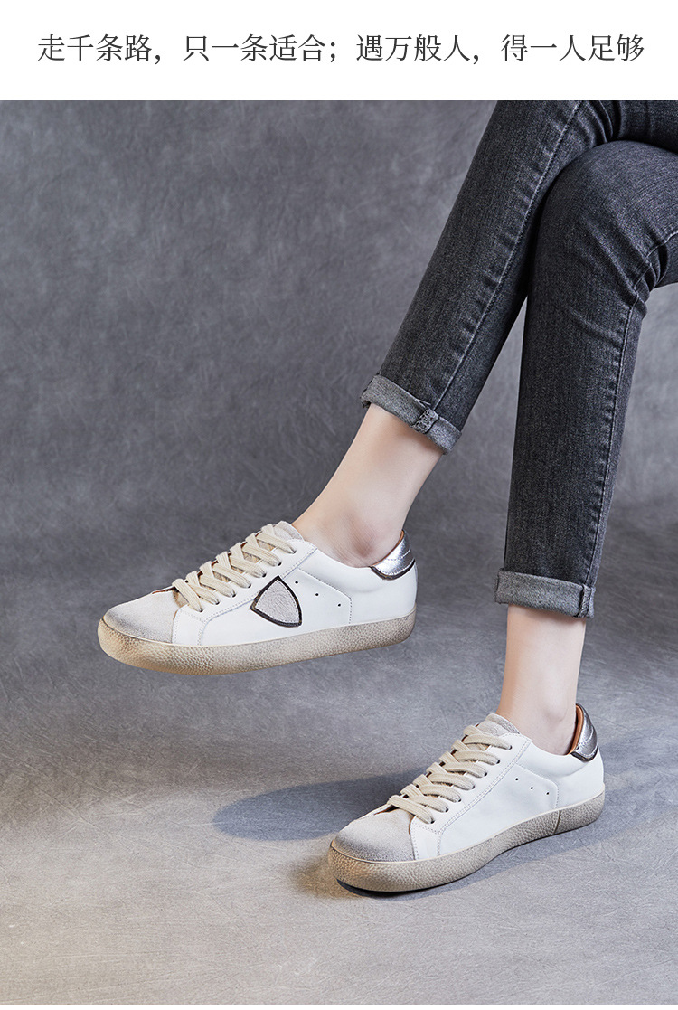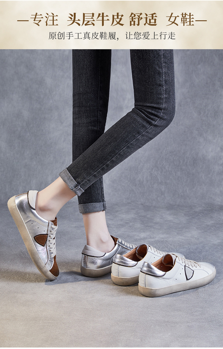 탑 레이어 소 가죽 오래된 작은 더러운 신발 2024 봄 새로운 캐주얼 내부 및 외부 가죽 플랫 여성용 레이스 업 컬러 매칭 보드 신발스토어 가기
