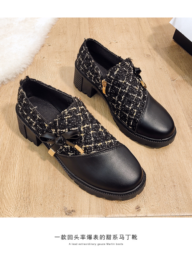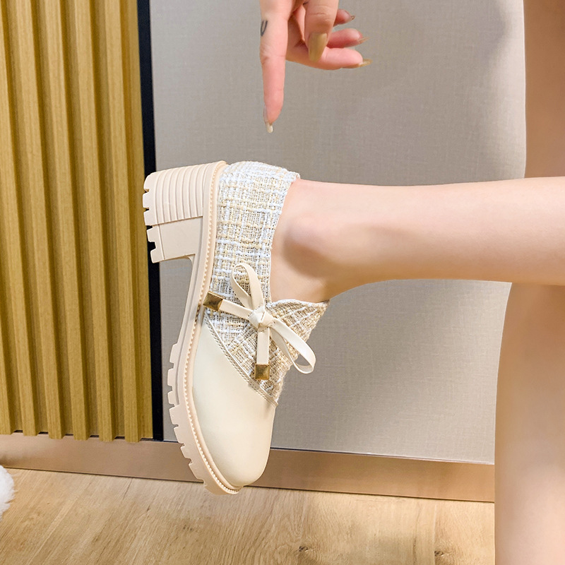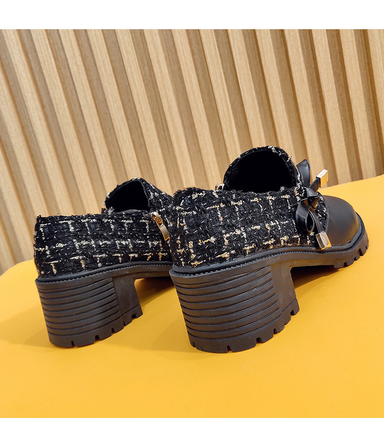 샤넬 스타일 싱글 레이어 신발 여성을위한 2023 새로운 청키 힐 짧은 여성 신발 가을 신발 한국식 가죽 신발스토어 가기