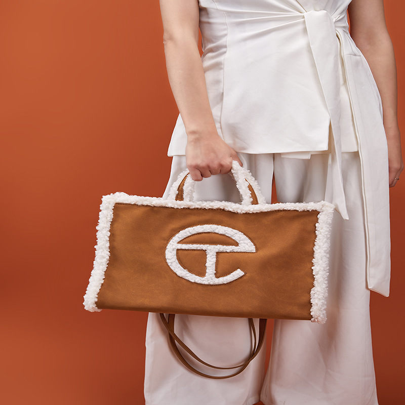 공동 브랜드 UG 모피 가방 가을 겨울 플러시 가방 양털 가방 대용량 토트 백 크로스 바디 작은 사각형 가방