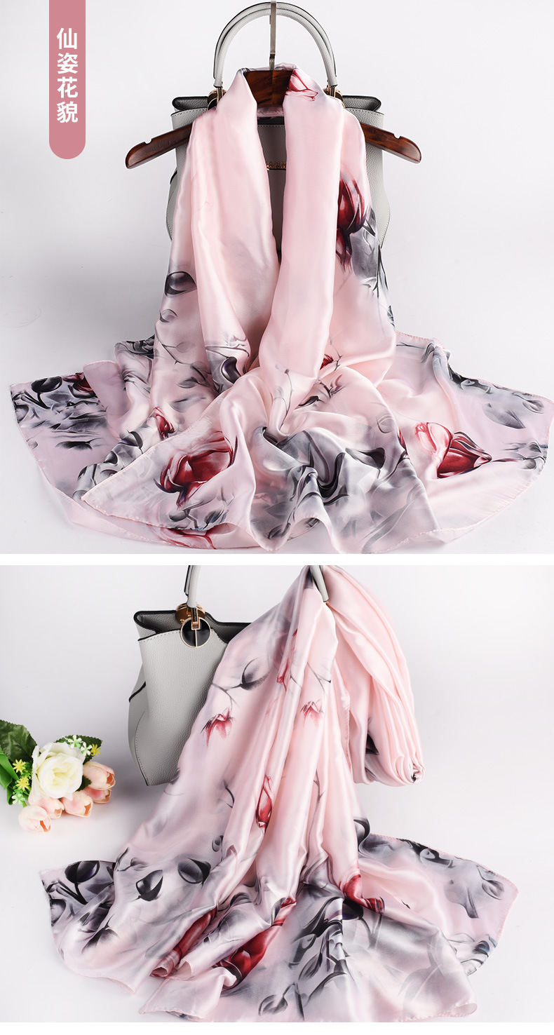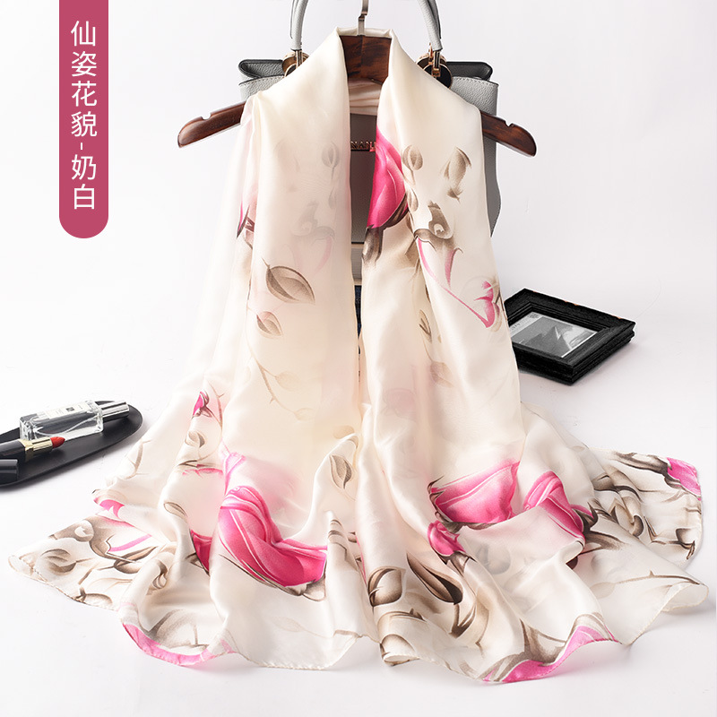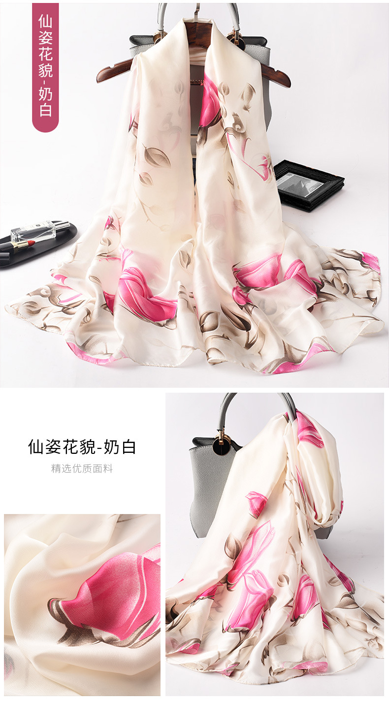 새로운 여름과 가을 패션 스카프 에어컨 목도리 여행 선 스크린 모든 경기 시뮬레이션 실크 새틴 여성 실크 스카프 항저우스토어 가기