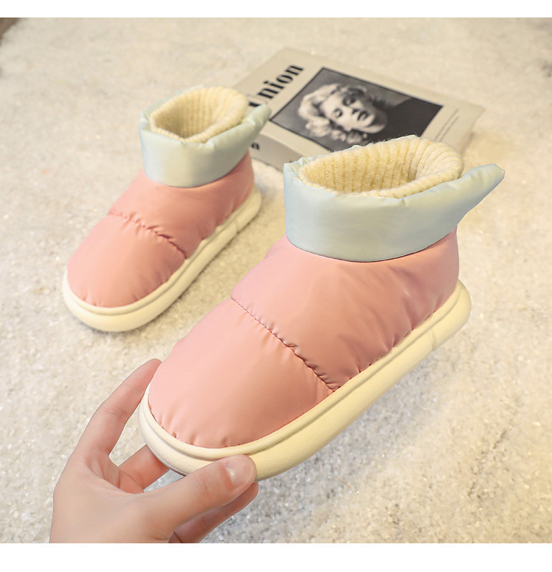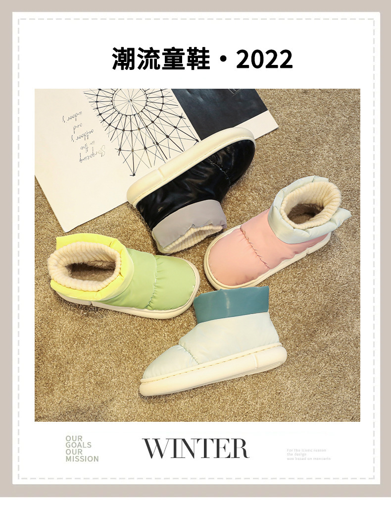 어린이 스노우 부츠 겨울 2023 새로운 귀여운 미끄럼 방지 기모 따뜻한 소년 소녀 깃털 플란넬 부모 자식 빵 신발스토어 가기