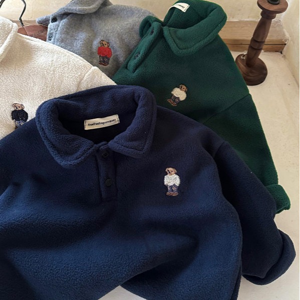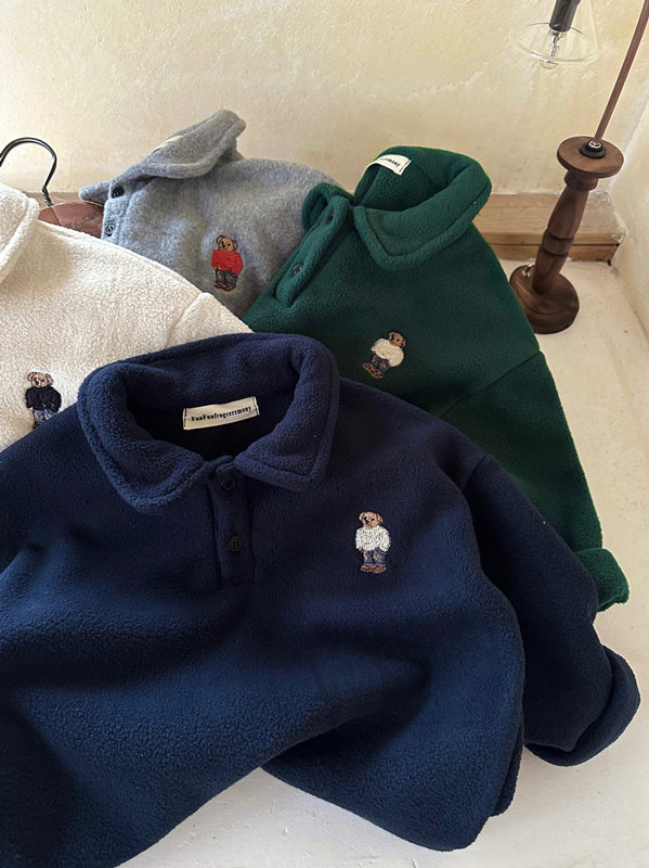 어린이 폴로 셔츠 2025 겨울 신상품 남녀 아동용 긴팔 폴라 플리스 보온 스웨트셔츠 아동복스토어 가기